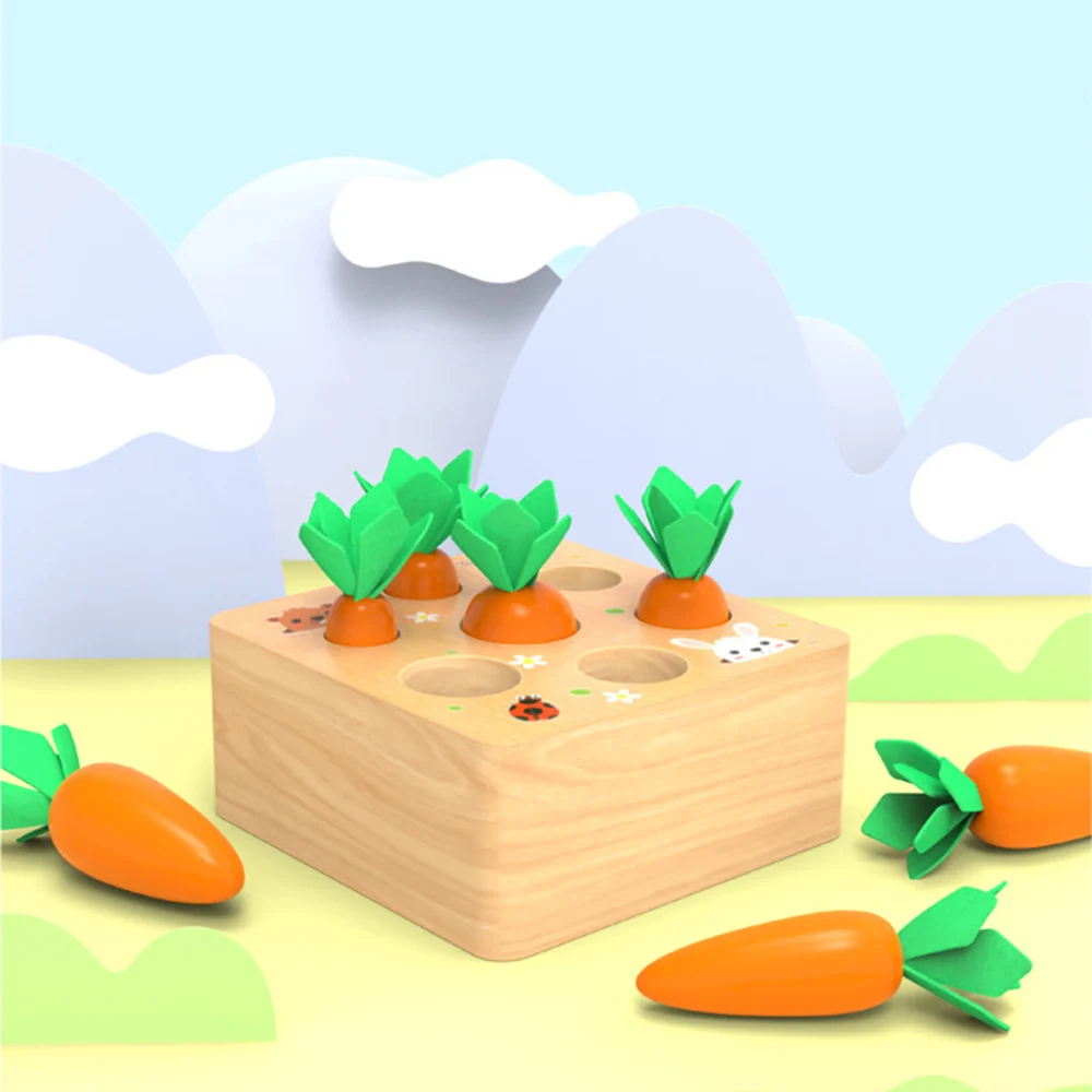 Деревянные игрушки для малышей, набор математических игрушек Монтессори, вытягивающая форма моркови, подходящая форма моркови, Сортировочная головоломка, познавательное образование