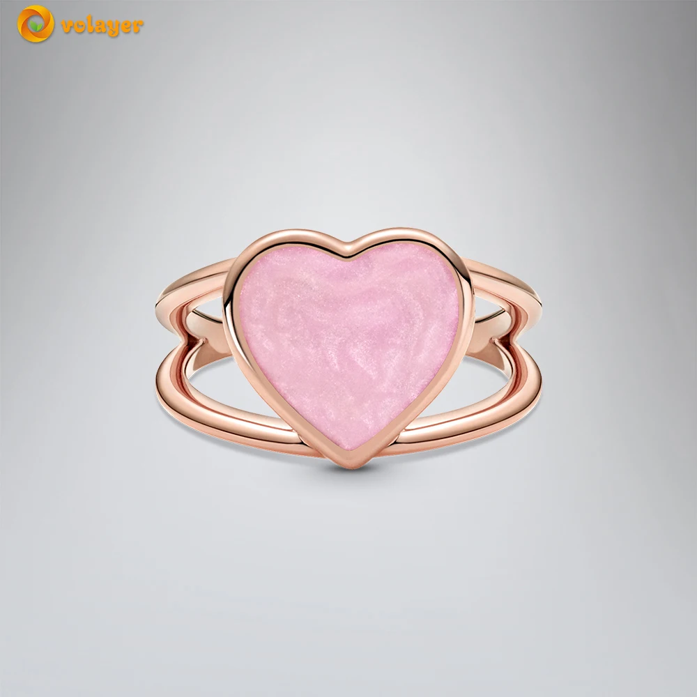 Кольцо женское из серебра 925 пробы, с розовым вихрем в виде сердца