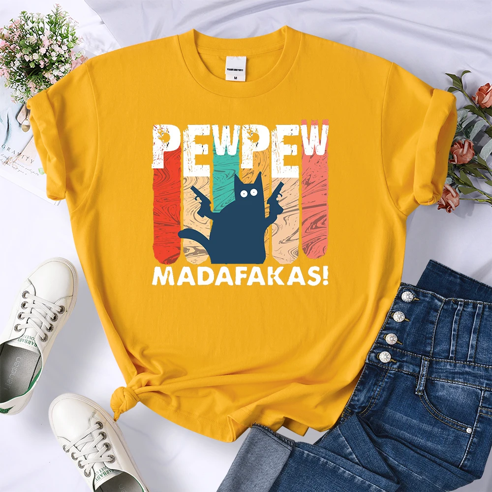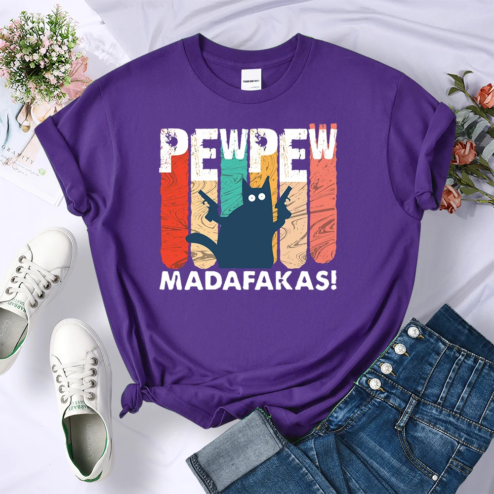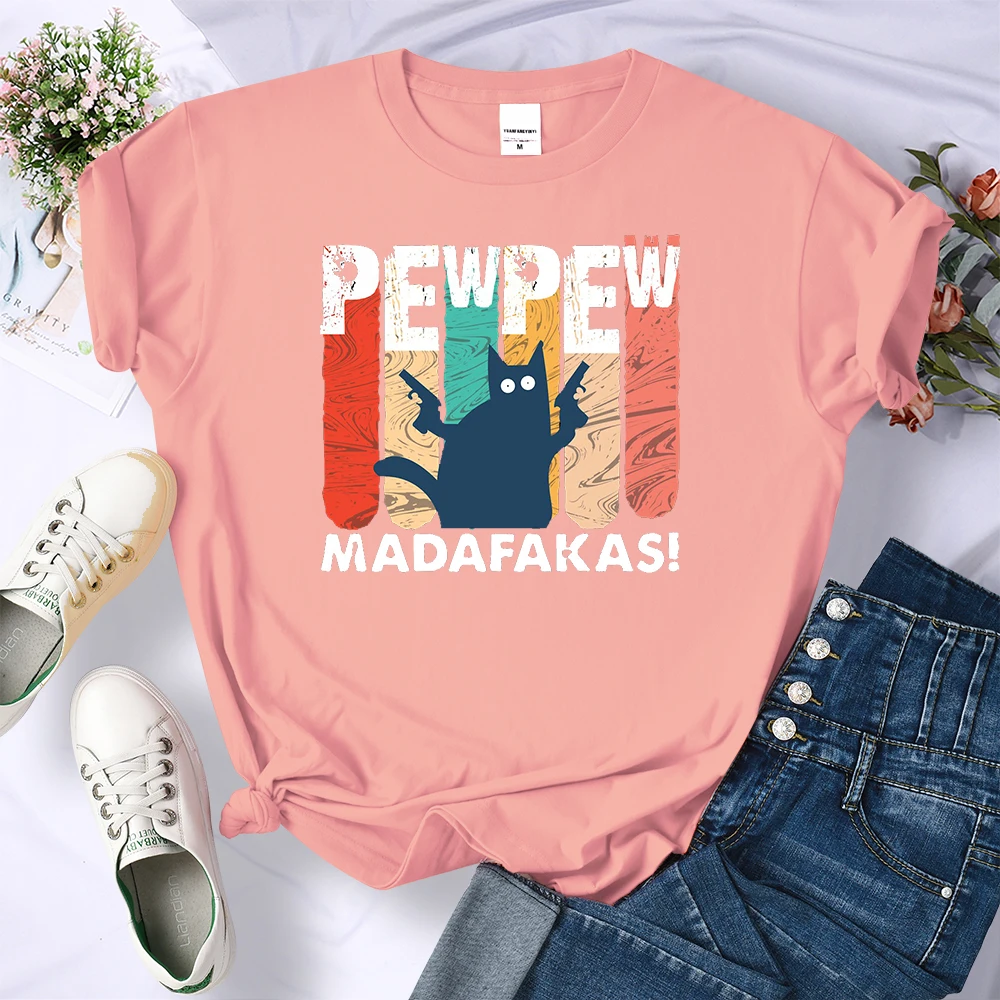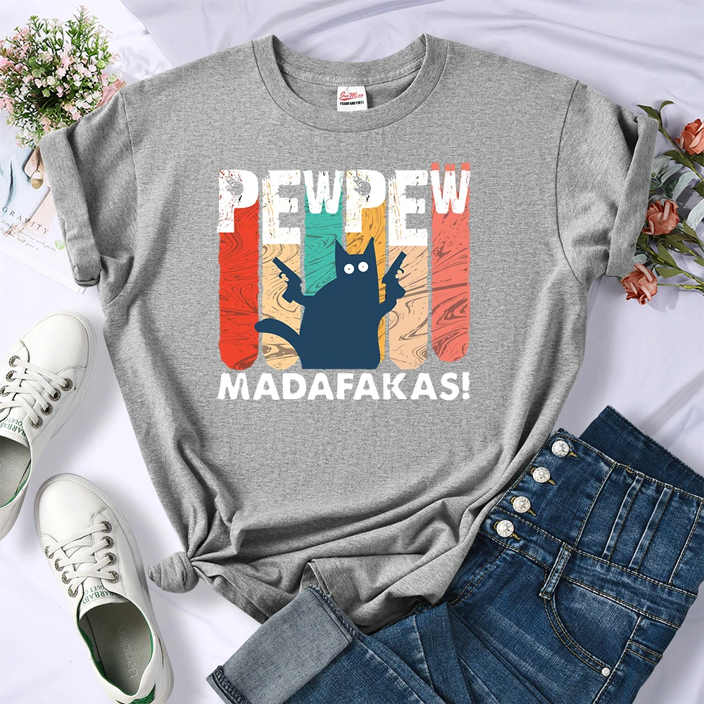 Футболка женская Свободная с круглым вырезом и графическим принтом Pew Madafakas, лето 2021