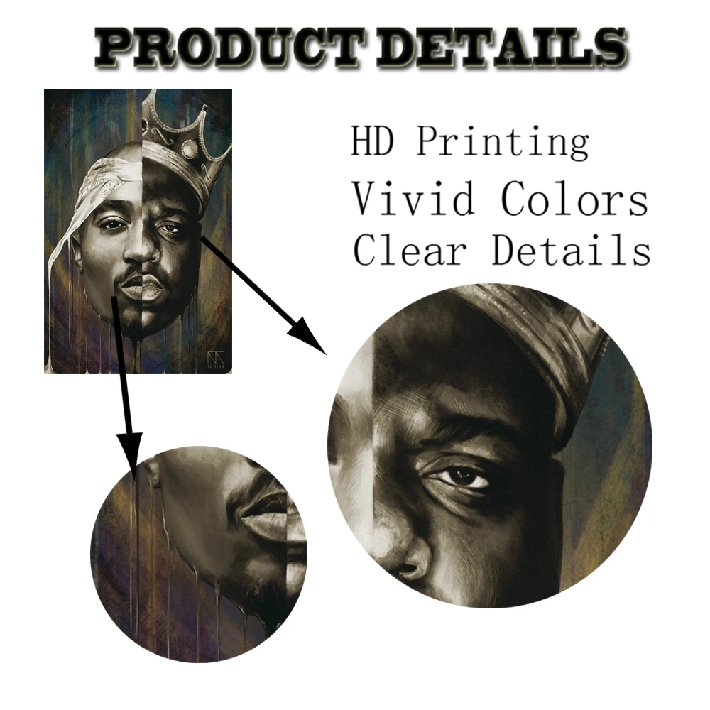 Картина на холсте Tupac Shakur Rapper King художественные плакаты и принты B.I.Biggie Smalls 2 Pac, настенная живопись, декор для спальни