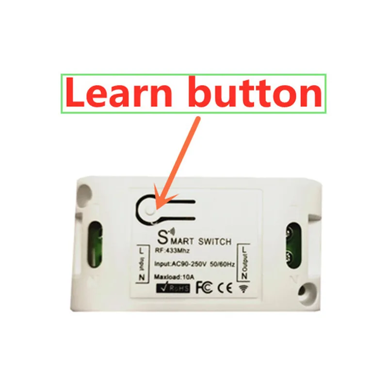 Нажмите кнопку «узнать» на приемнике один раз, чтобы перейти в режим настройки переключателя.
