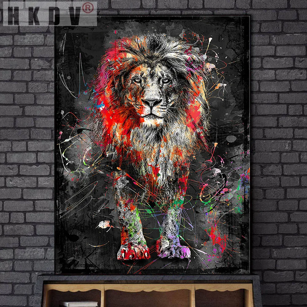 Животное, олень, Лев, обезьяна, искусство на холсте, живопись, пост...