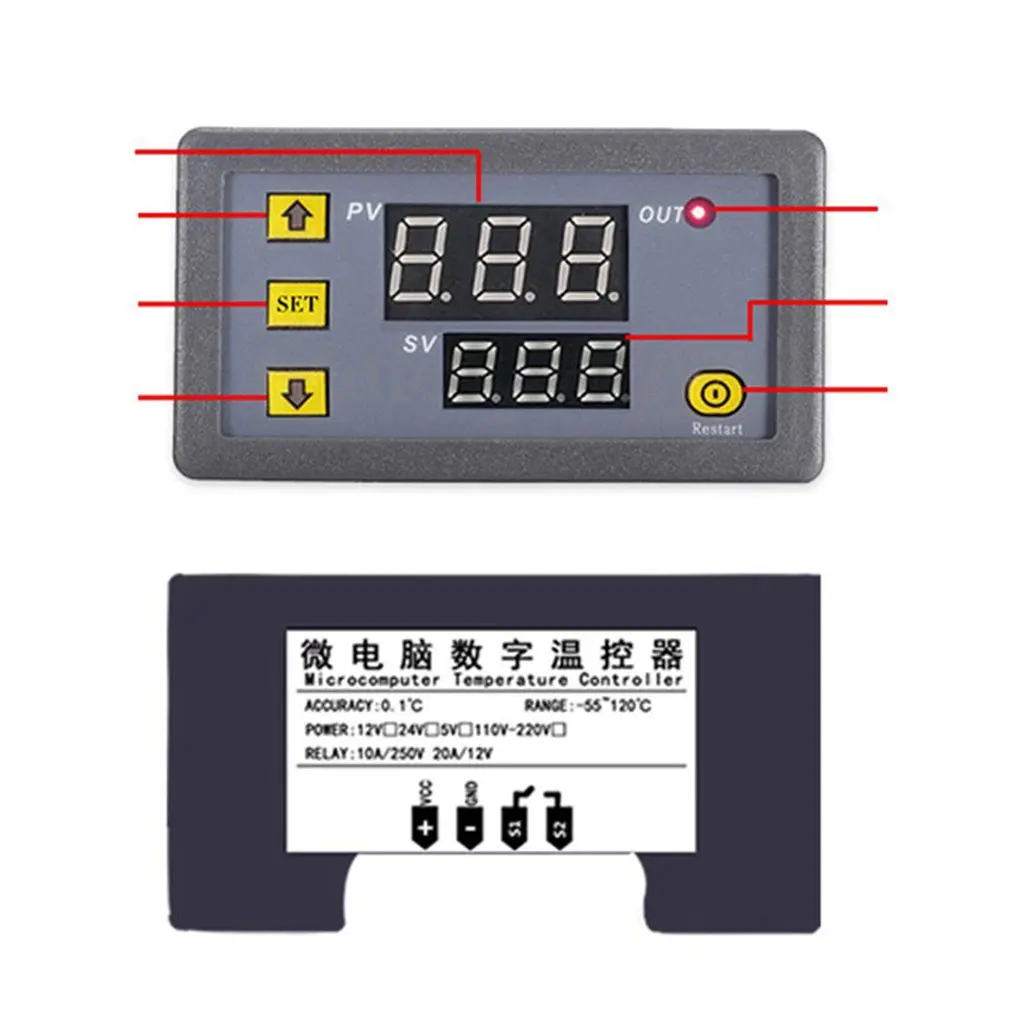 Цифровой регулятор температуры W3230, термостат с двойным светодиодным индикатором