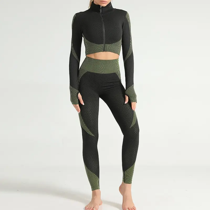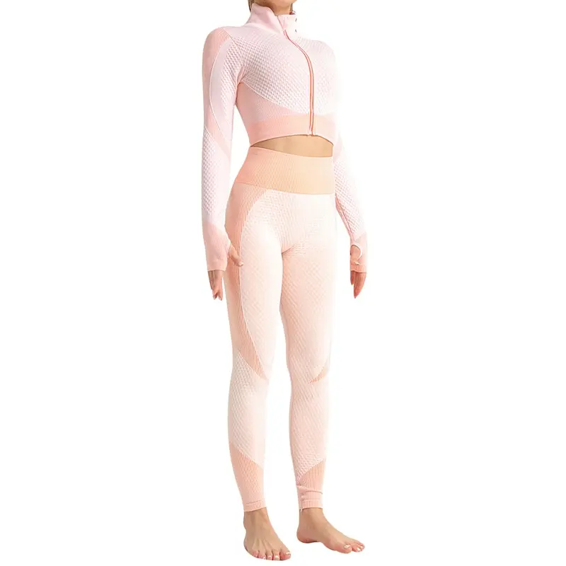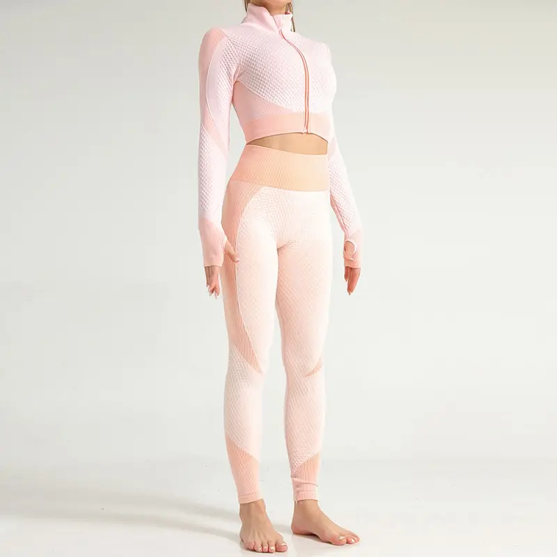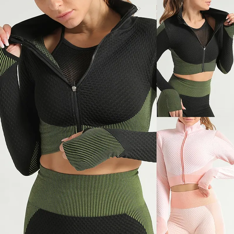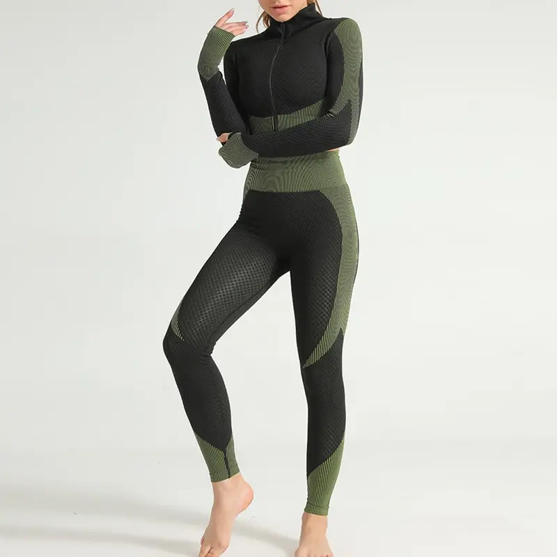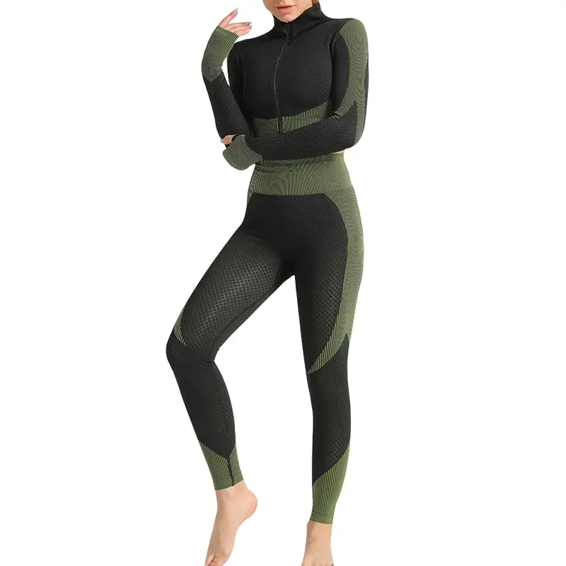 Костюм спортивный женский для фитнеса и бега, бесшовный спортивный костюм, топ на молнии, облегающие брюки для йоги, 2021