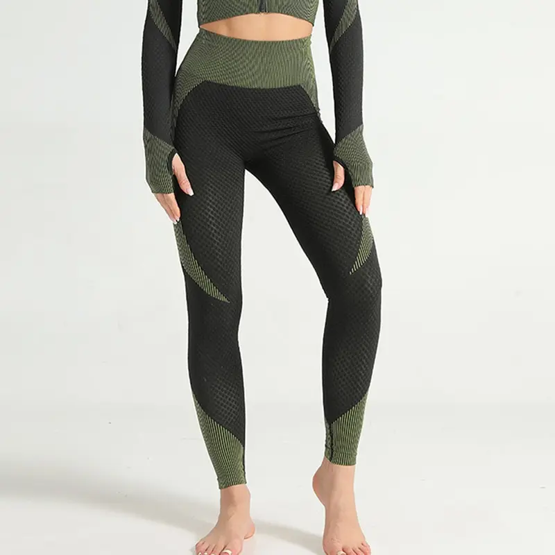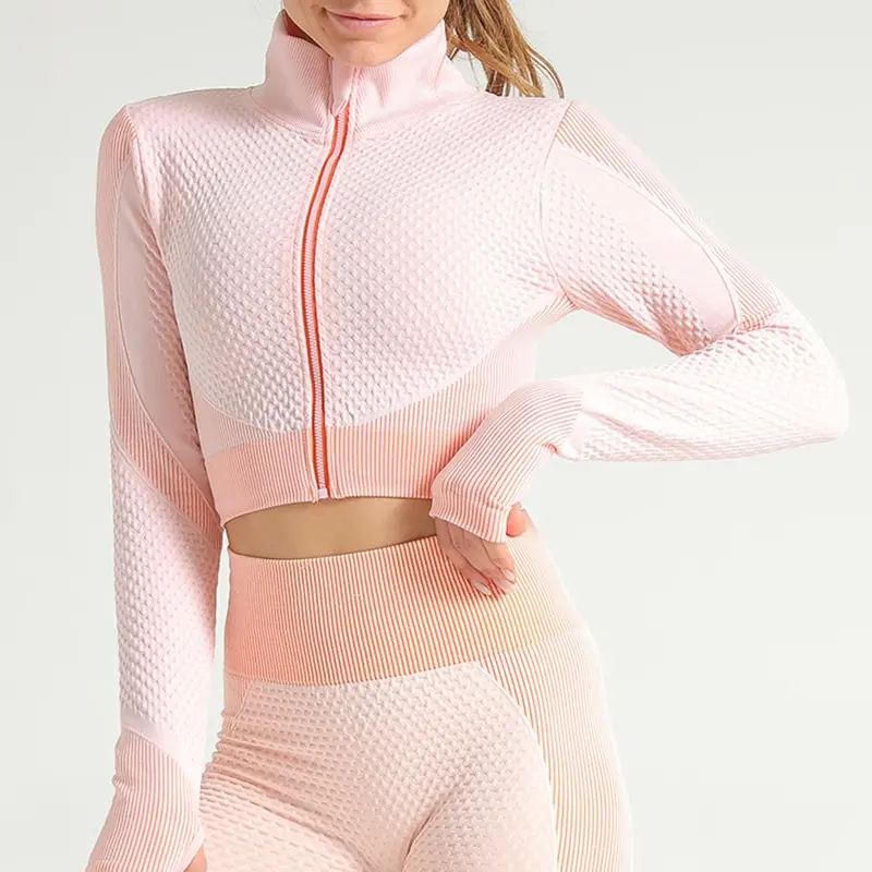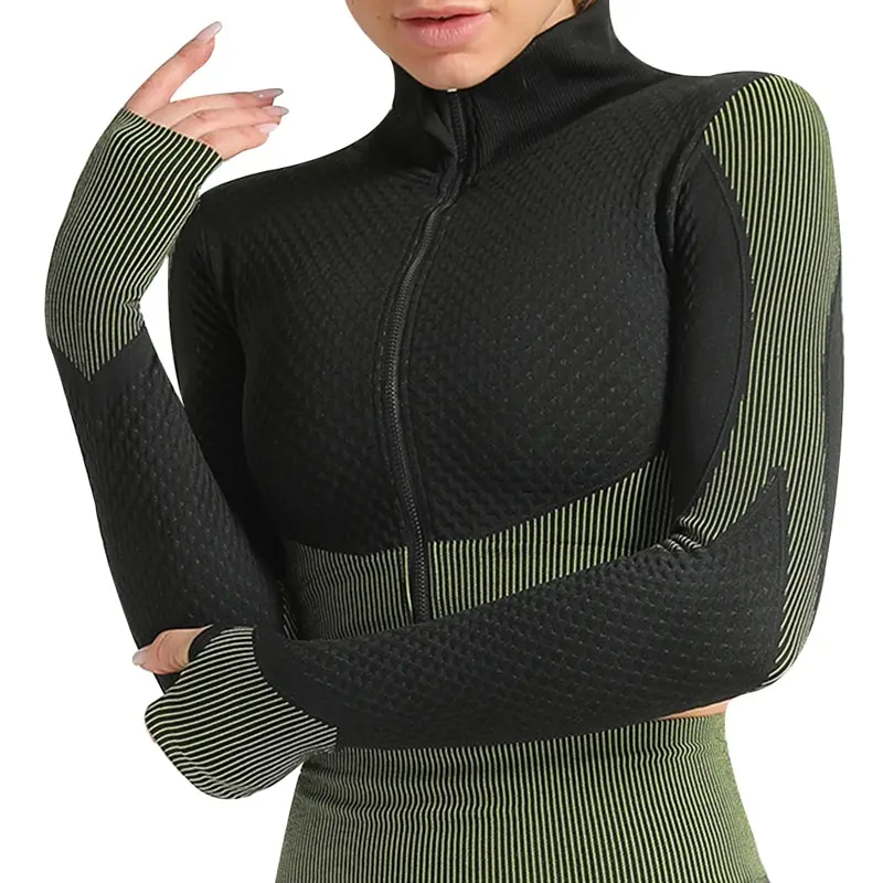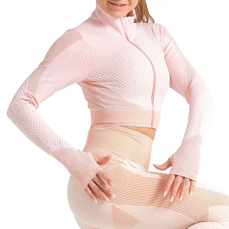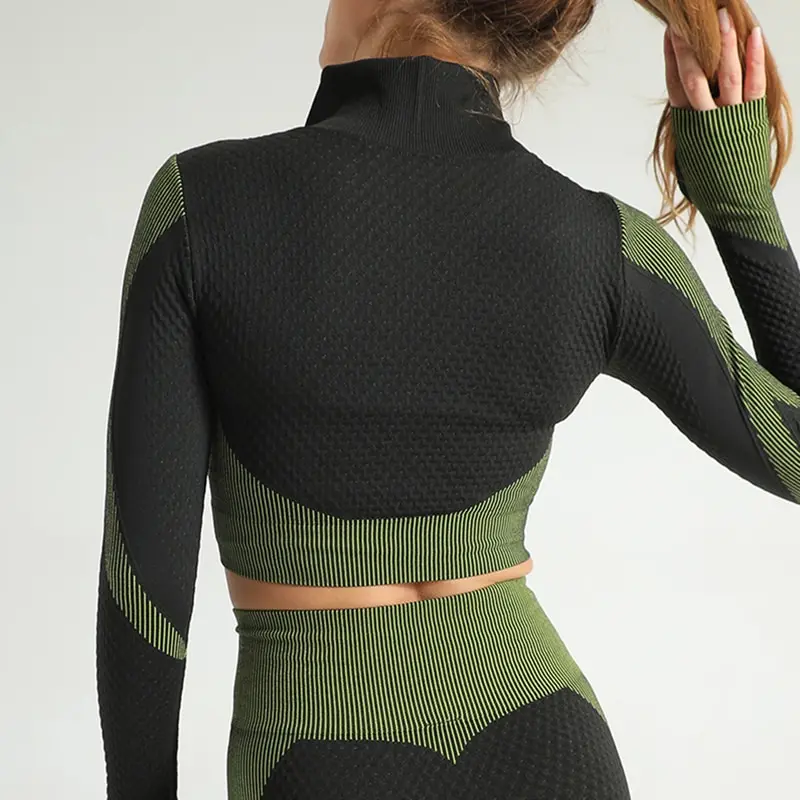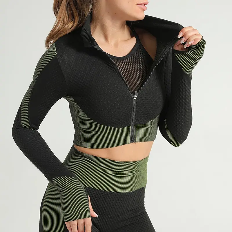 Костюм спортивный женский для фитнеса и бега, бесшовный спортивный костюм, топ на молнии, облегающие брюки для йоги, 2021