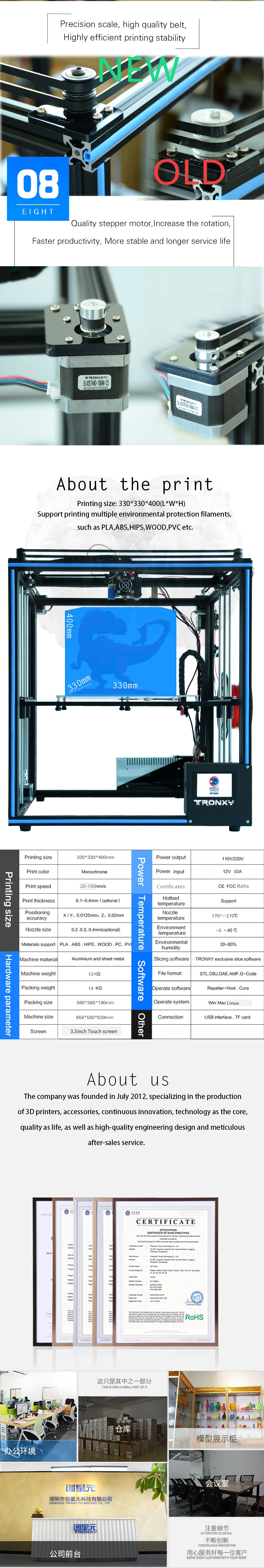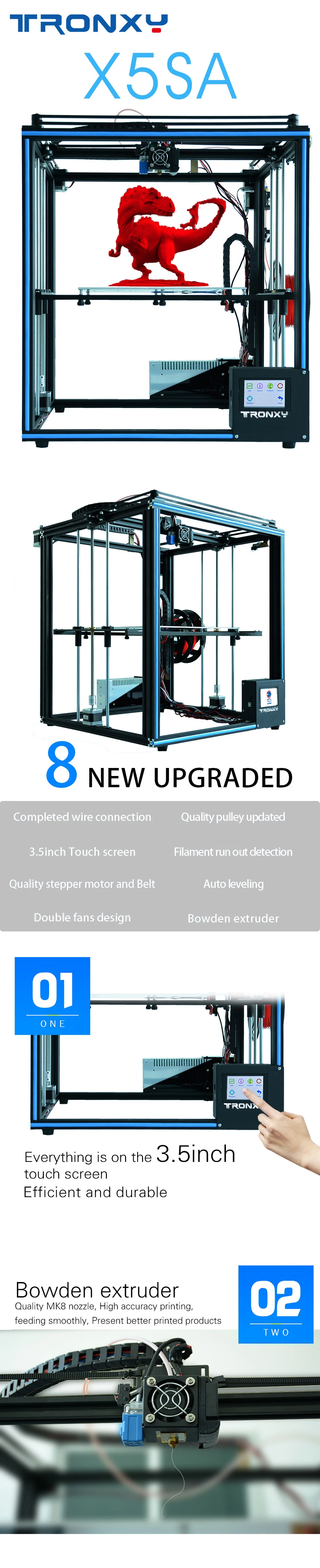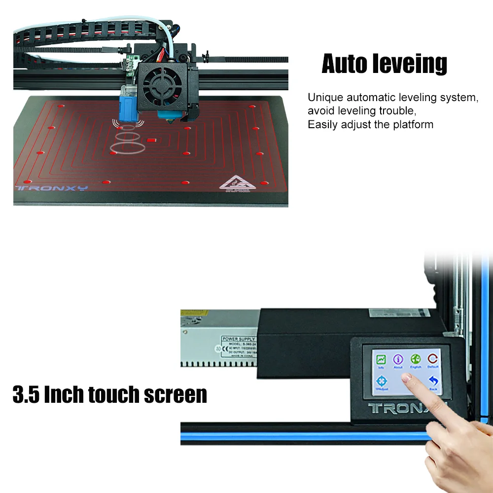 Максимальный размер печати: 330*330*400 ммX5SA 24 вольт постоянного тока (24V Мощность питания + очаг Размер: 330*330 мм + сенсорный экран Экран + автоматическое выравнивание + Датчик накаливания + Мощность отказ поиска печать)X5SA 12 В (12 в источник питания + hotbed Размер: 330*330 мм + сенсорный экран + автоматическое выравнивание + Датчик накаливания + сбой питания с повторной печатью)
