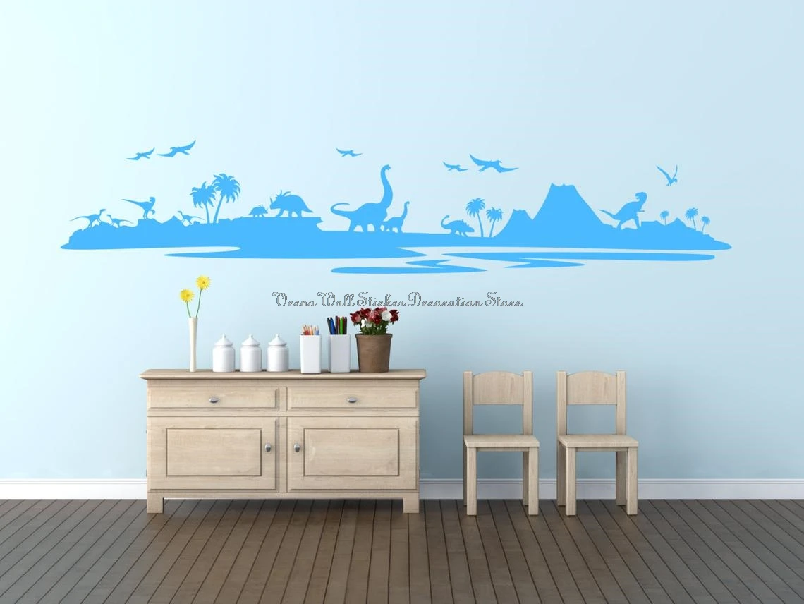 Виниловые наклейки на стену с изображением большого леса динозавра природных птиц, детская комната, комната мальчиков, детский сад, декоративные наклейки на стену KL3
