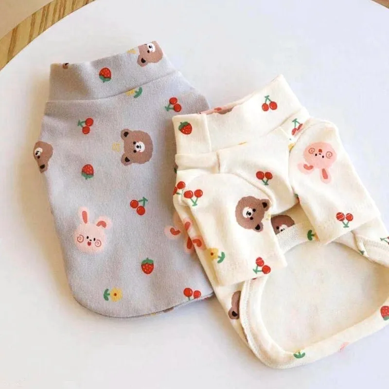 Летняя одежда для собак, собак, футболка, жилет, милый хлопок, вишневый медведь для маленьких средних собак, пара, одежда для собак, костюм чихуахуа