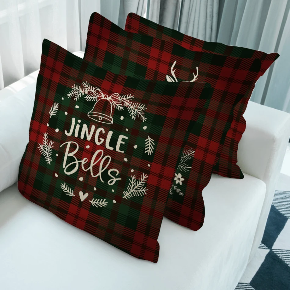Nanacoba Рождественская наволочка для подушки красный и зеленый плед классический Чехол для подушки квадратная печать олень венок пледы подушки Чехол домашний декор