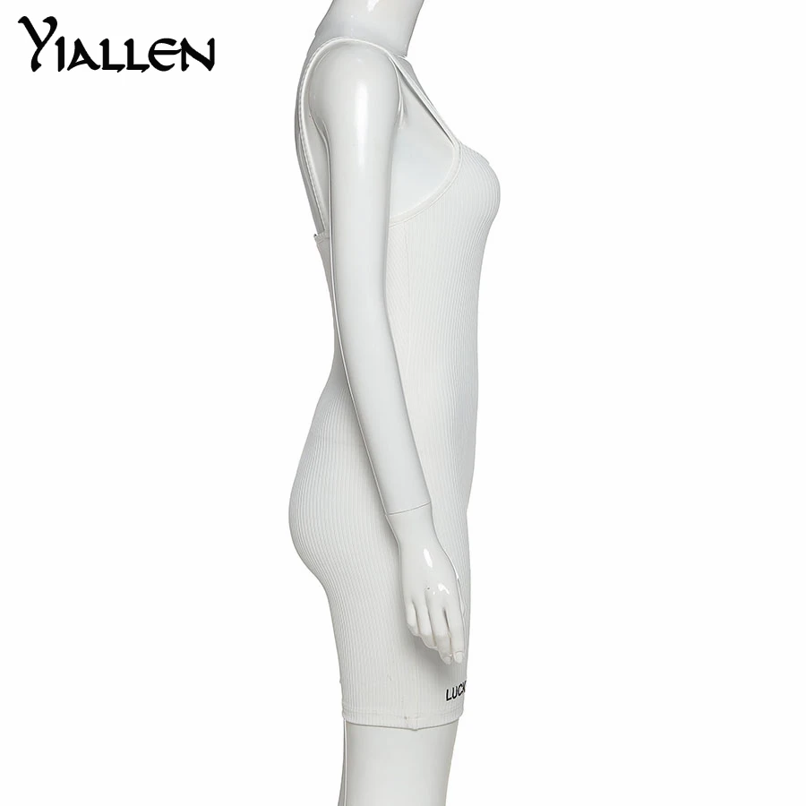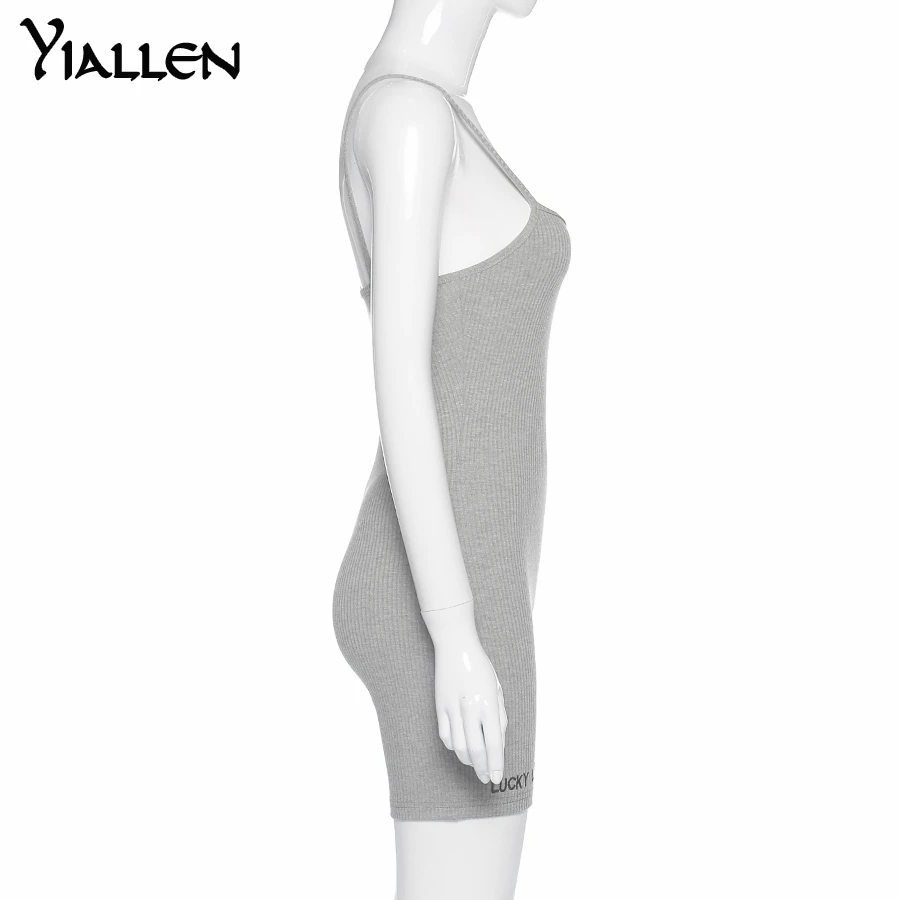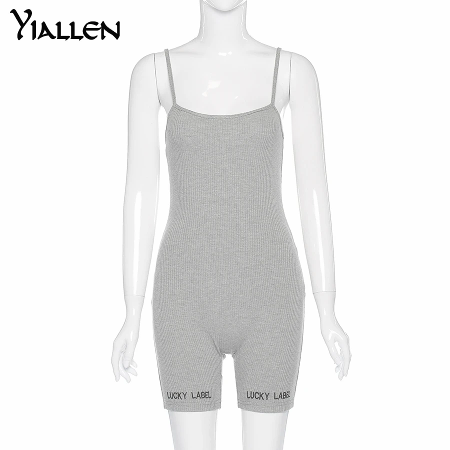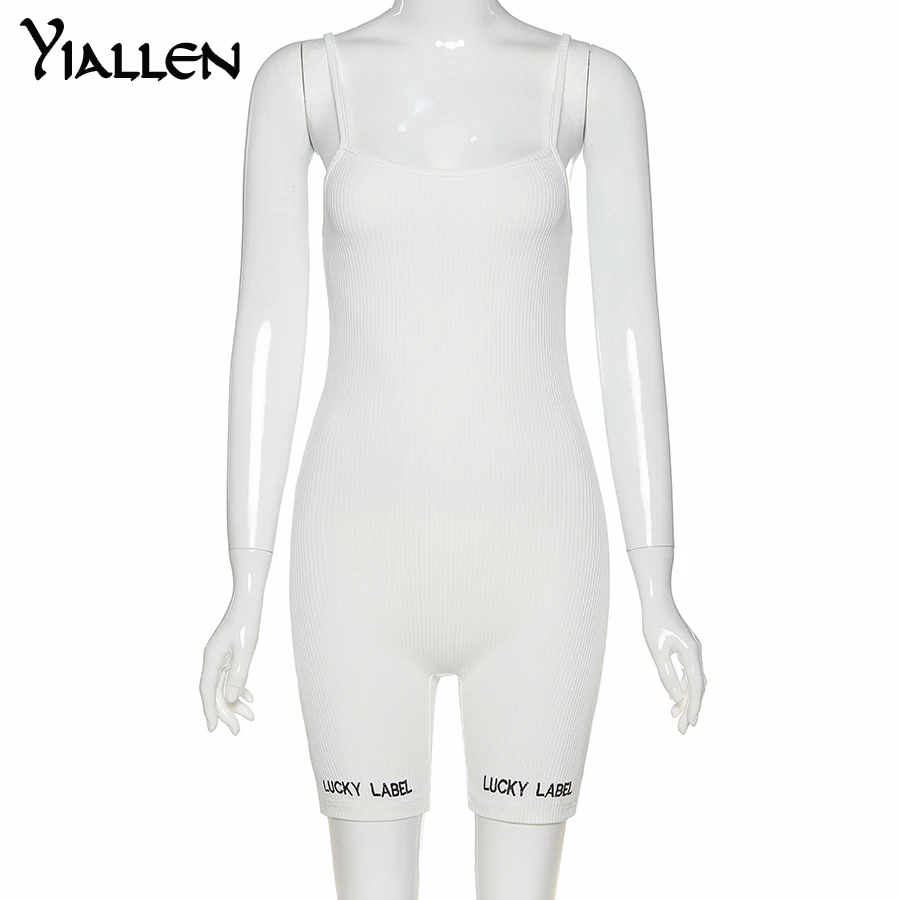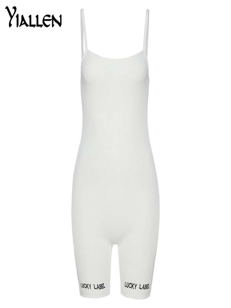 Женский комбинезон в рубчик Yiallen, комбинезон на подтяжках комбинезон с вырезом лодочкой и вышивкой букв, эластичное уличное Боди без рукавов, облегающий, на лето
