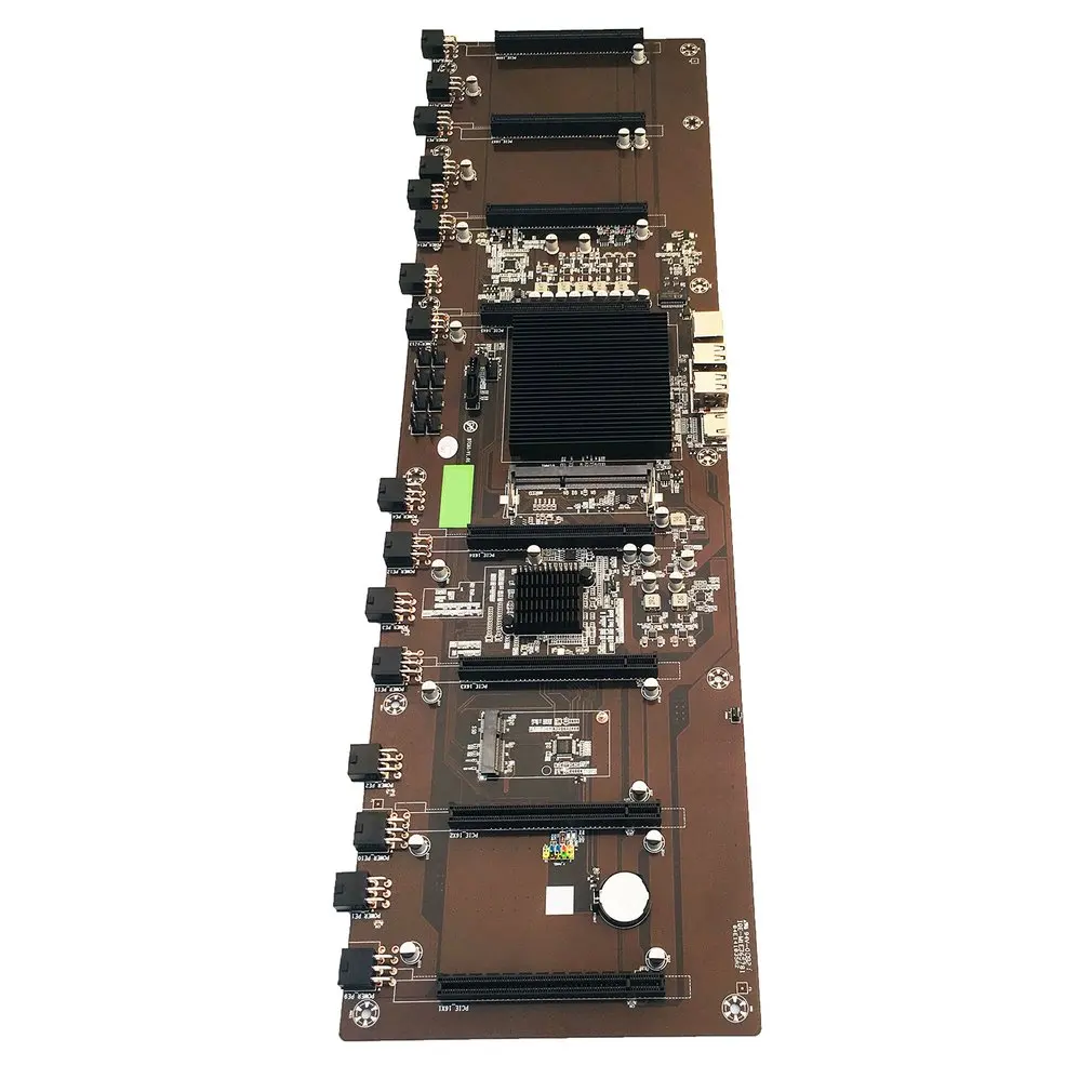 Особенности: 1. Поддержка общих карт шахт, таких как серии RX, серии gtx10, серии gtx20, серии gtx30 и т. д. 2. Все твердые конденсаторы: все твердые конденсаторы обладают стабильной производительностью и значительно продлевают срок службы материнской платы. 3. Интерфейс USB 3,0: подключи и работай, сразу же ощутите скорость передачи данных в 10 раз быстрее, чем USB 2,0. 4. Материнская плата HW65 mining содержит 8 6-контактных слотов для видеокарт с большим расстоянием между видеокартами 68 мм. 5. Интегрированный процессор ноутбука, слот памяти DDR3 для ноутбука, поддержка 1660, 2070, 3090, rx580 и других полных серий видеокарт. Описание: Мультиграфические Материнские платы не нуждаются в переключении, они являются более стабильными, используя чипы HM65, все твердые конденсаторы и гигабитные сетевые карты. Характеристики: Тип материнской платы: E-ATX Размер материнской платы: 570*165 мм Модель основного чипа: HM65 Слои печатной платы: 4 слоя Модуль питания: 8 6-контактных портов графического источника питания Интегрированная графика: Интегрированная Интегрированная сетевая карта: гигабитная Адаптивная сетевая карта Встроенная звуковая карта: нет Тип слота процессора: Встроенный и не заменяемый Слот памяти: ноутбук DDR3. 1 слот 1 канал Максимальный объем памяти: ноутбук 8 Гб * 1,1600 Скорость памяти: 1600/1333/1066 Интерфейс SATA: SATA3.0 * 1, MSATA * 1 Интерфейс USB: USB2.0 * 2, USB3.0 * 2 (включая расширение) Интерфейс M.2: нет Посылка 1 * мультиграфическая материнская плата