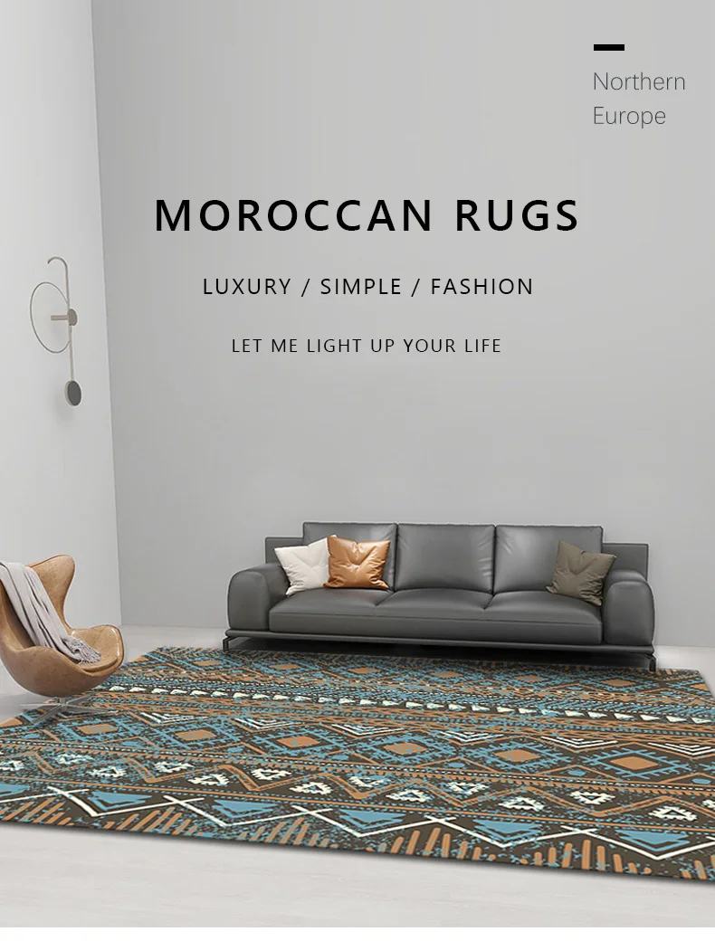 Европейский Марокко стиль ковер Нескользящие геометрические печатные ковры для гостиной Кабинета столовой Коврики для спальни Декор коврик