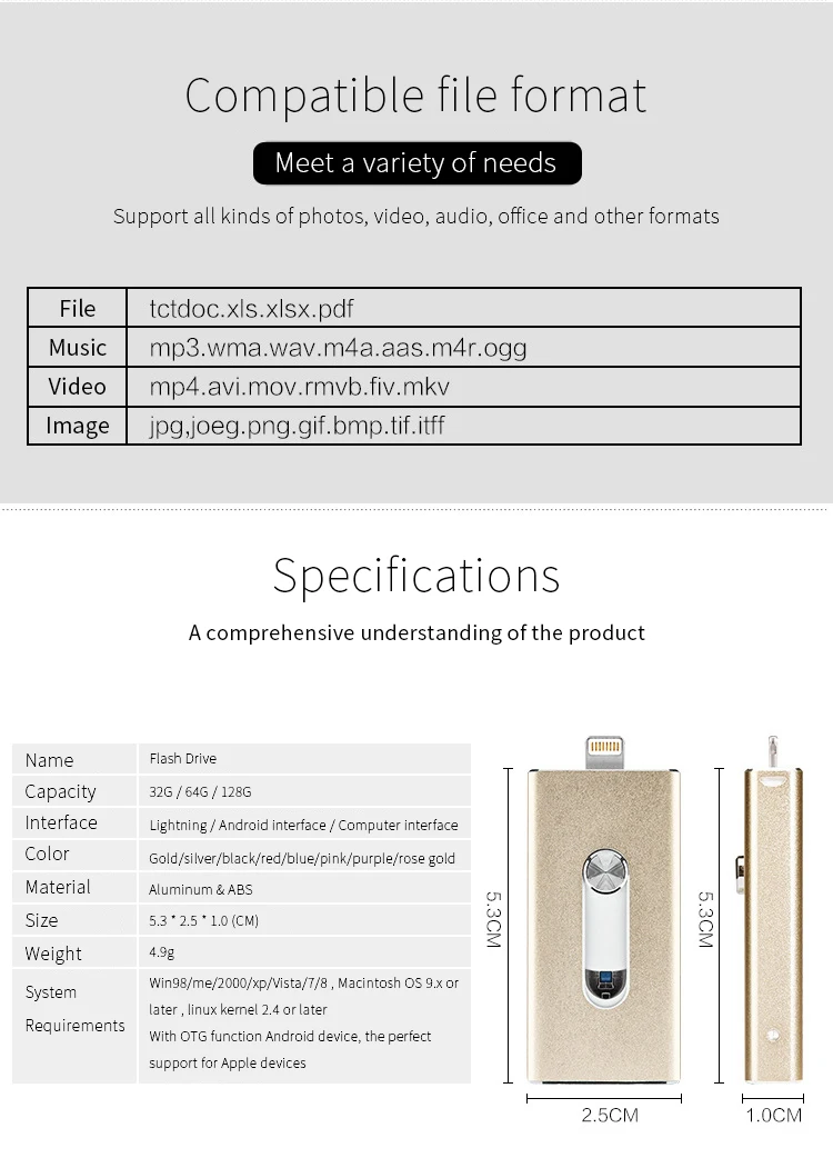 Внешний флеш-накопитель для iphone 8, 8 Plus, 7, 7Plus, XS, ipad, 128 ГБ, 64 ГБ, 32 ГБ, 16 ГБ