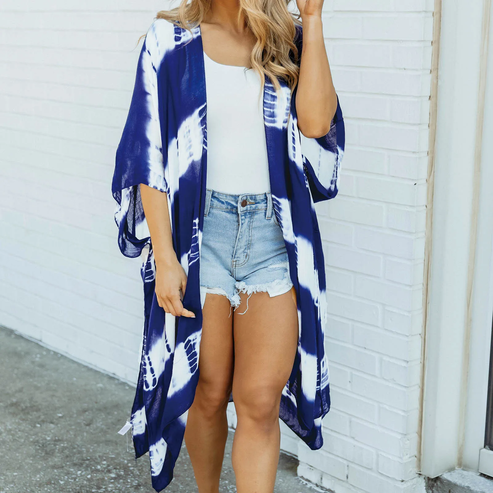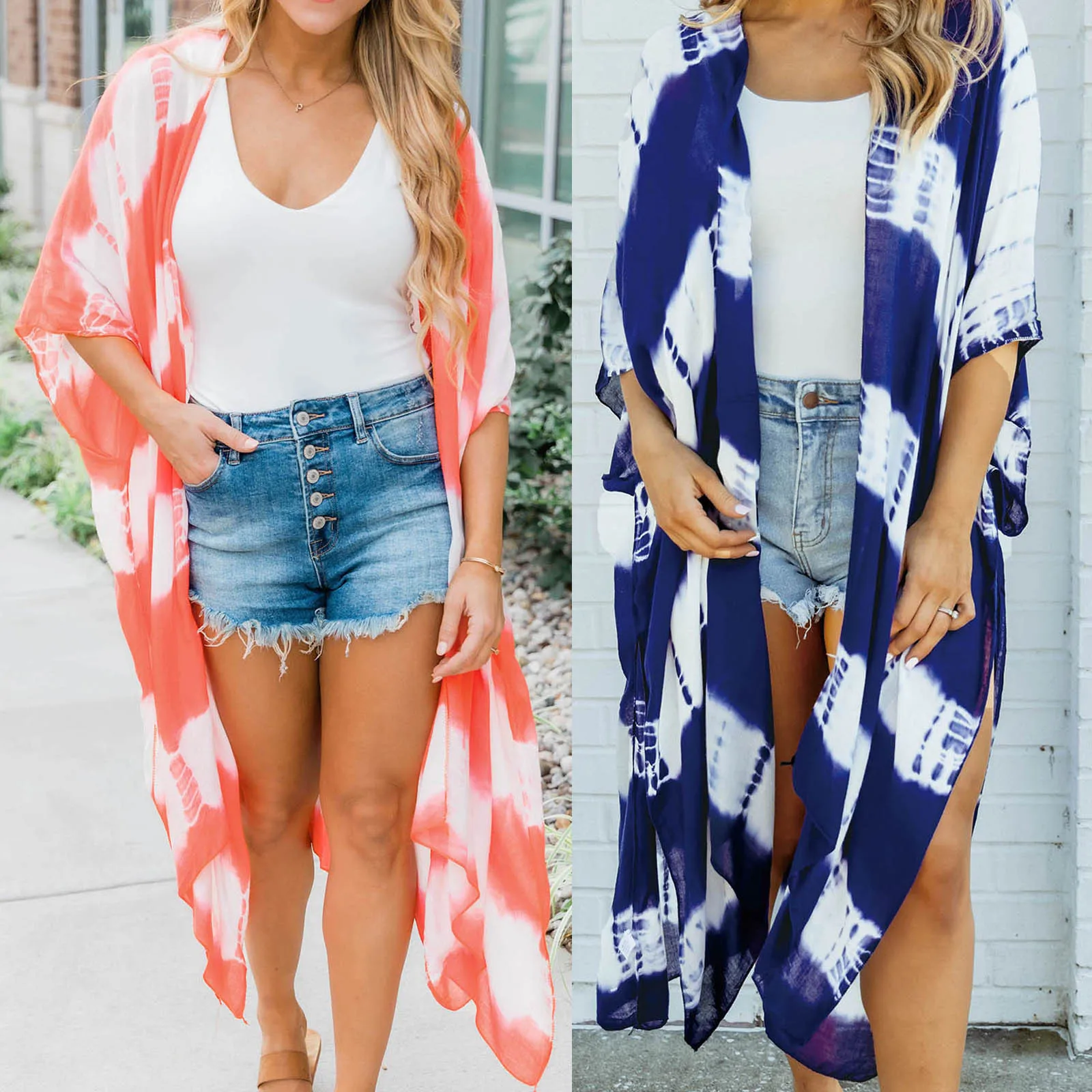 Стиль: идеально подходит как уличная одежда, пляжная одежда, курортная одежда, повседневное кимоно, Накидка на пляжный купальный костюм, модная шифоновая блузка, Сексуальная Пляжная накидка Верх, тонкое пальто на весну, лето, осень и т. Д. Универсальный гардероб Степлер как для жарких дней на улице, так и для холодного кондиционирования воздуха в помещениях