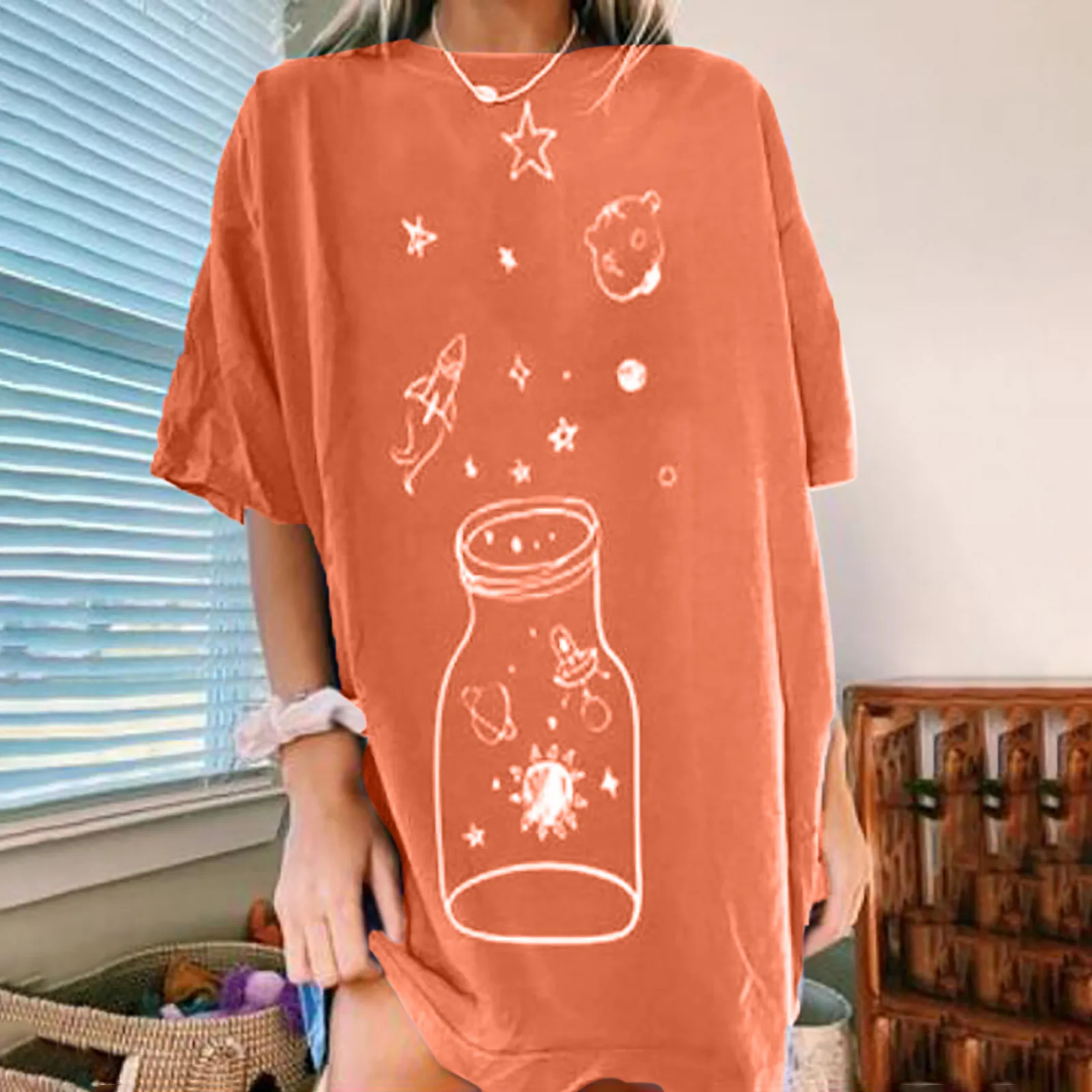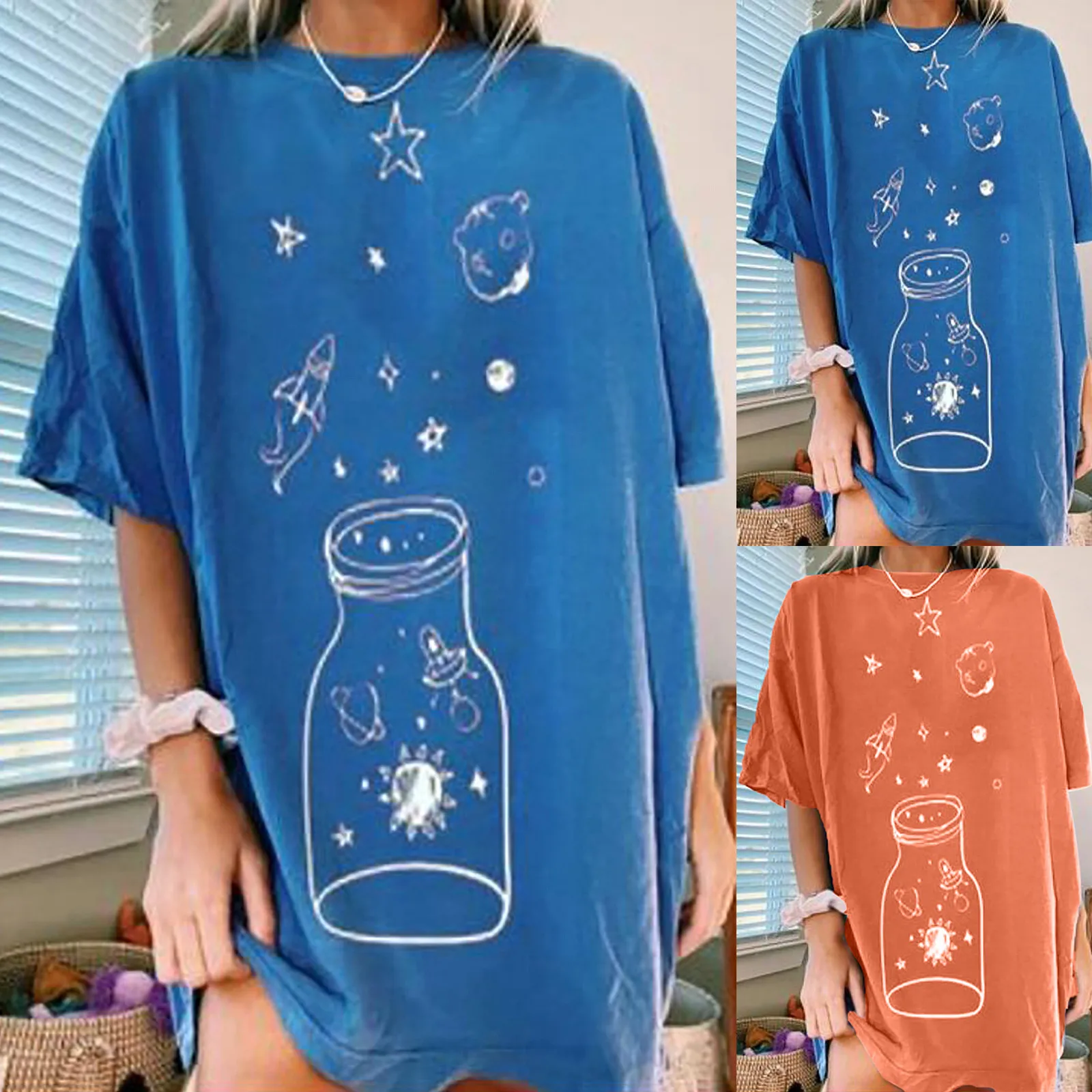 Женская Винтажная Футболка с принтом в виде бутылки желаний, Повседневная Свободная Футболка с коротким рукавом, Одежда большого размера, лето 2021