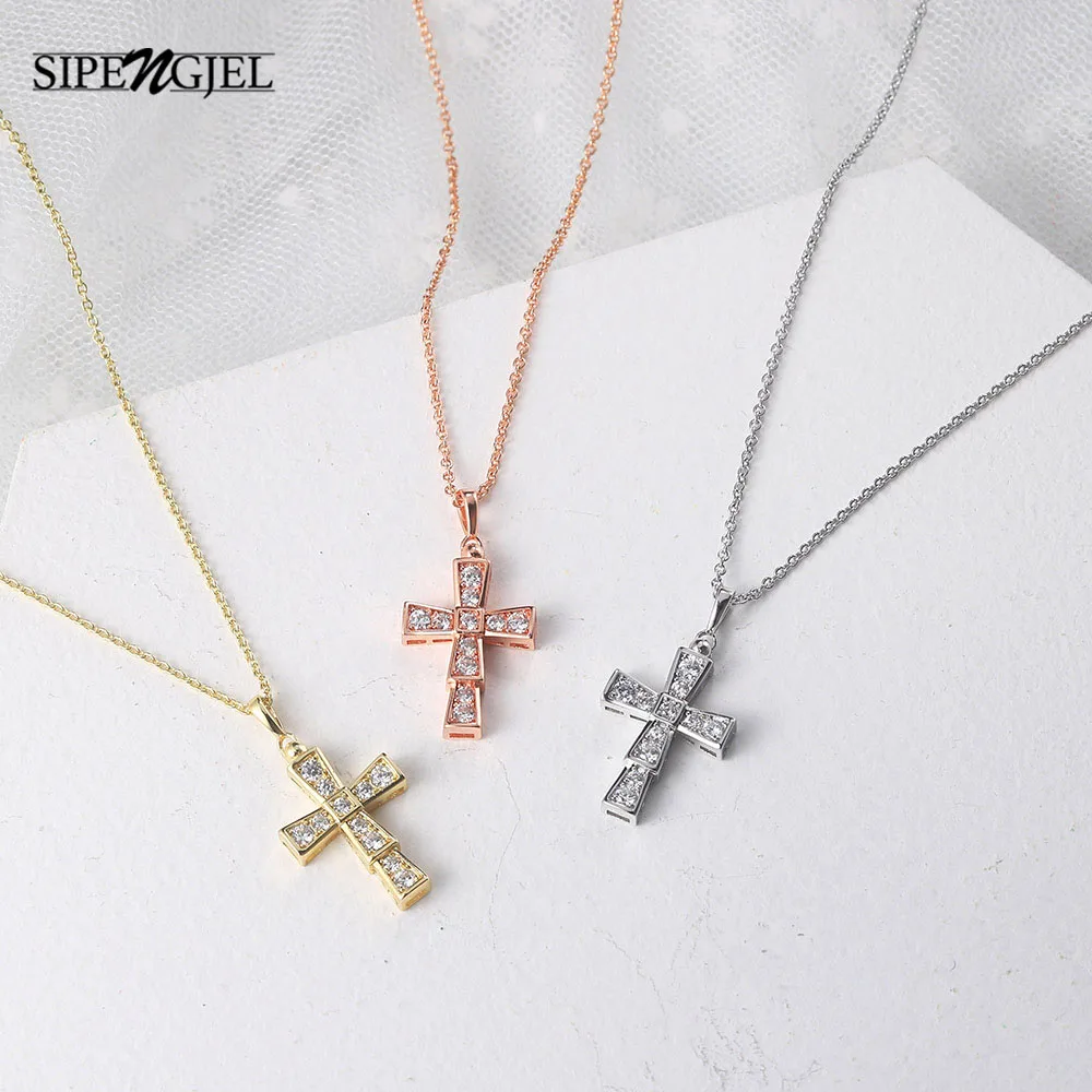 SIPENGJEL, модное женское ожерелье с подвеской крест, 3 металлических цвета, колье с крестом Иисуса для женщин, ювелирные изделия 2021