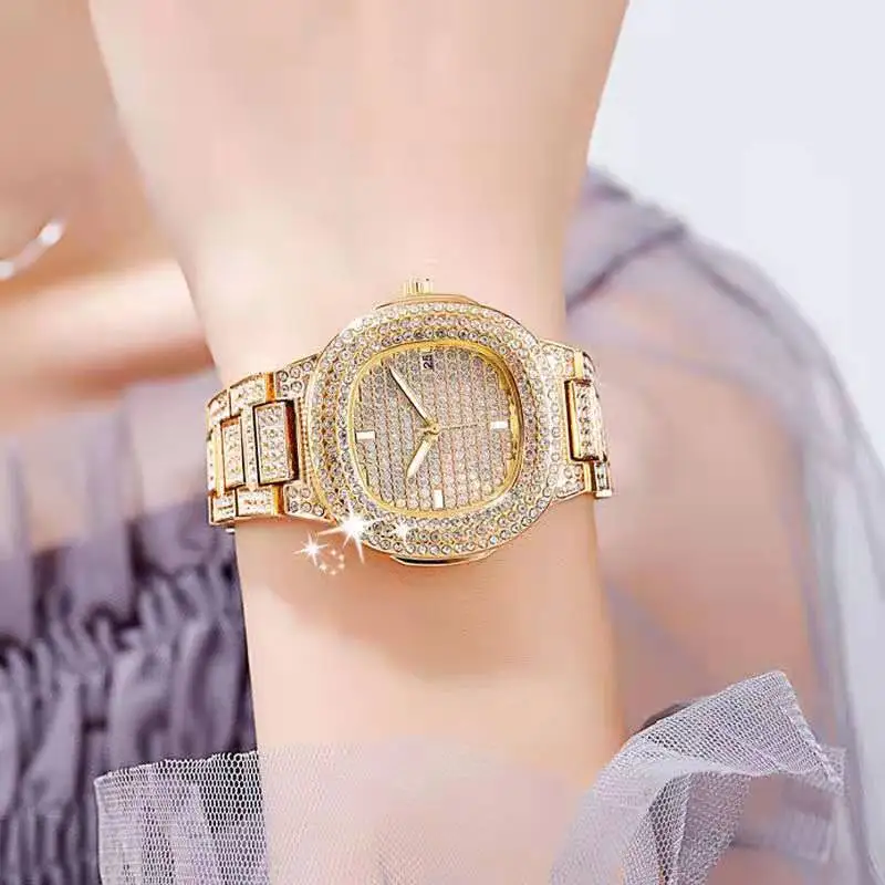 Часы для женщин льдом с бриллиантами наручные часы, кварцевые наручные Стразы в Кубинском стиле часы украсила из часы подарок по оптовой цене, часы, наручные часы с механизмом, De Mujer; Большие размеры