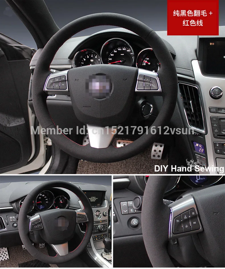 Для Cadillac CTS-V высококачественный нескользящий чехол рулевого колеса ручной работы из черной замши с красной нитью сделай сам