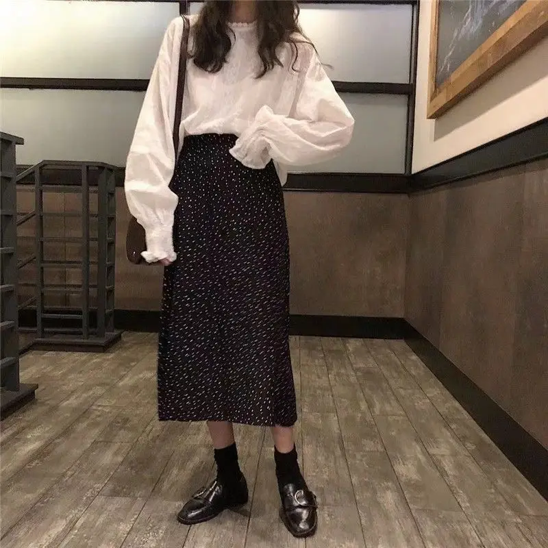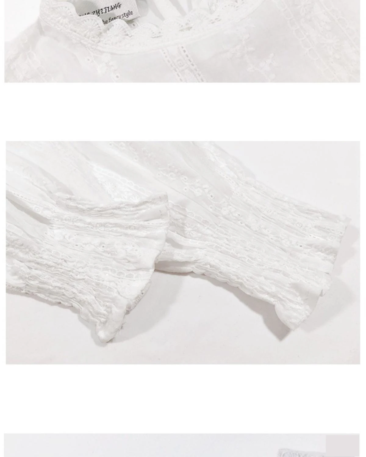 Женская шифоновая блузка с рукавами-фонариками, однотонная белая Свободная блузка с круглым вырезом и кружевом в Корейском стиле, одежда для весны 2022