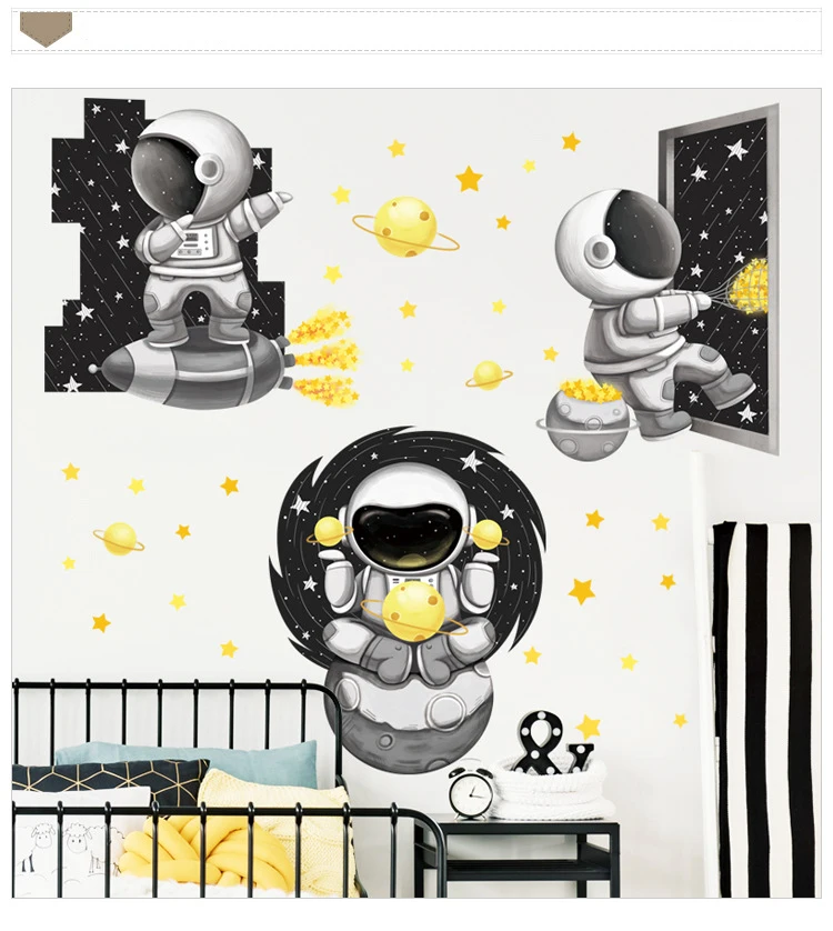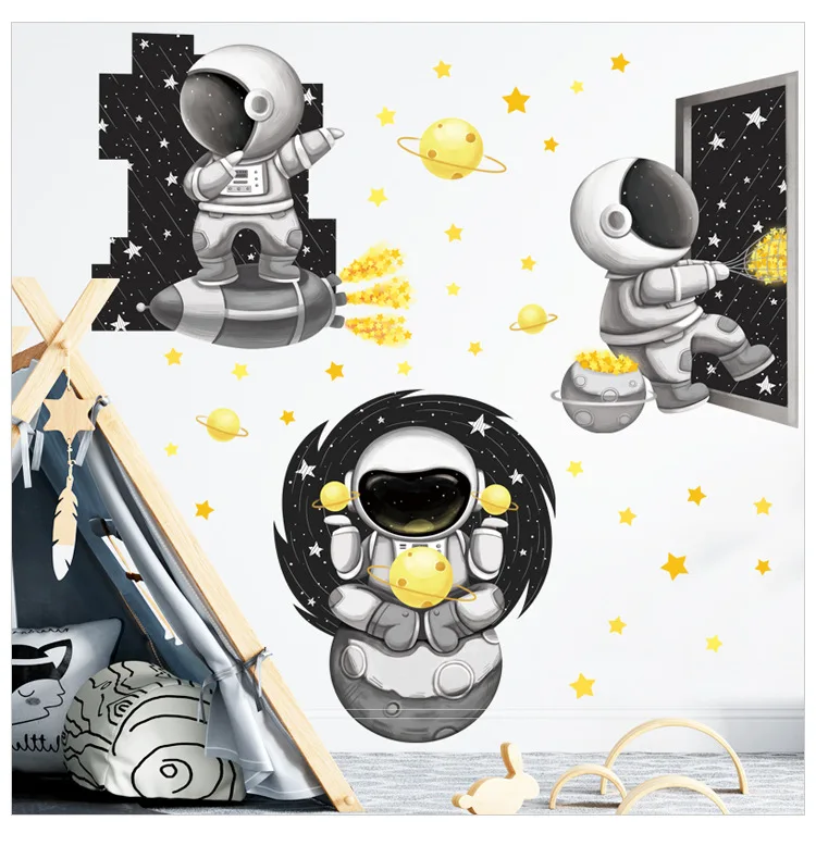 Мультяшные спортивные настенные наклейки с астронавтом для детей, детской, детской, Настенный декор, виниловые съемные настенные наклейки из ПВХ для спальни