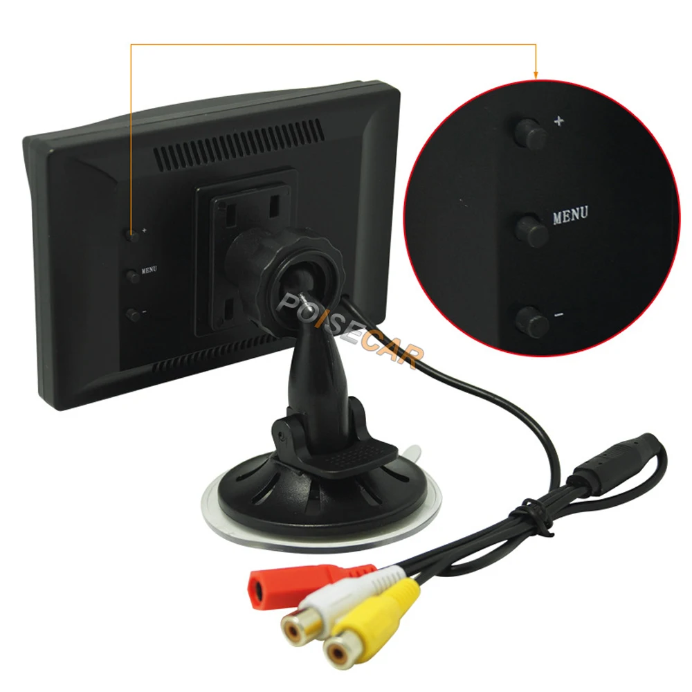 Категория: TFT-LCD Размер дисплея: 5 дюймов Внешний размер: длина 12,5 см * ширина 8,3 см * Толщина 1,2 см Мощность: около 3 Вт Источник питания: постоянный ток = 9-35 в широкое напряжение Видео: весь путь назад к входу заднего вида, весь путь к DVD видео входу Стандарт: /NTSC двойная система автоматического переключения Контраст: 350:1 Яркость: 300 кд/м2 Количество пикселей: 800 * RGB * 480 Особенности: 1. Два видеовхода, без входного сигнала-черный экран 2. Может быть подключен к системе заднего хода. При реверсе сигнал от монитора автоматически просыпается. После заднего хода монитора изображение будет автоматически выключено и выключено. 3. Регулируется в меню: контрастность, яркость, цветность, режим (16:9/4:3) и т. Д. 4. 2 канала AV входного сигнала, один канал предпочтителен для заднего хода камеры, другой канал для других видеосигналов, и устройство с av-выходом может быть подключено. Интерфейс также является наиболее распространенным av-интерфейсом для вашего удобства! 5. Видео кабель подключен к дисплею, и кабель питания подключен к резервному источнику питания лампы. Он автоматически отображается, когда транспортное средство перевернуто, и изображения ясны в течение дня и ночи.