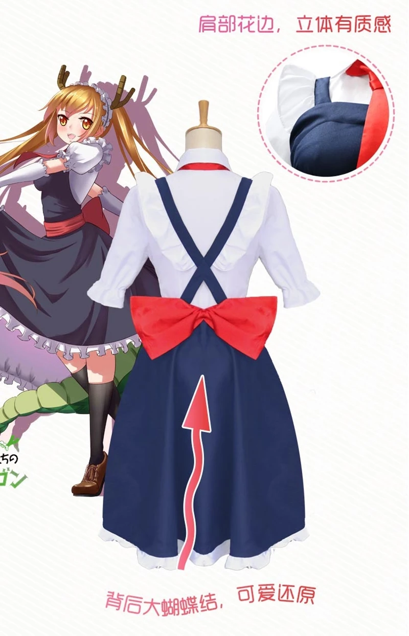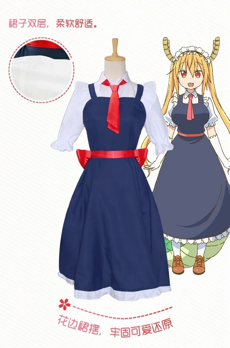 Женский костюм для косплея Тору из аниме Мисс Кобаяси, костюм горничной из дракона для праздничной вечеринки, костюм с париком