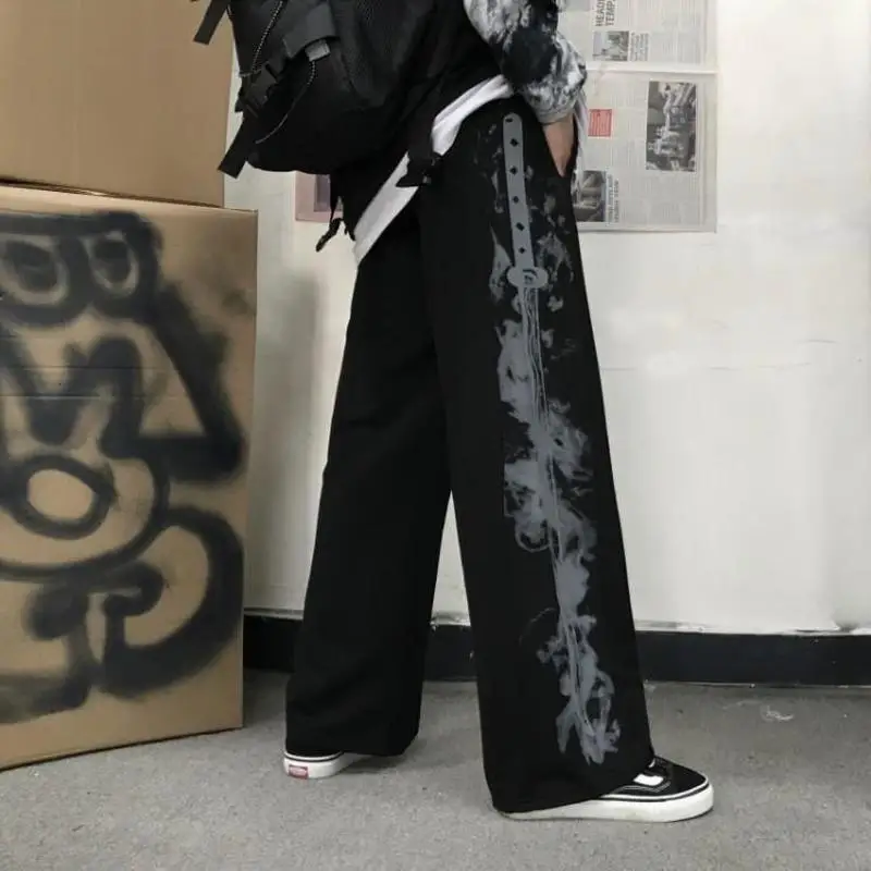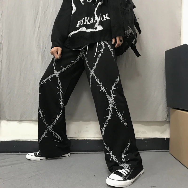 Женские брюки в стиле ретро Harajuku, свободные широкие брюки с принтом шипов и эластичной резинкой на талии, модная уличная одежда, темные повседневные брюки унисекс