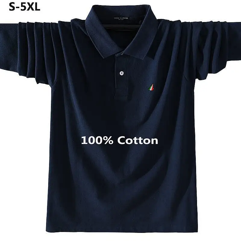 100% хлопок высокого качества; Сезон весна-осень; Классические мужские футболки с длинным рукавом футболки-поло рубашки для мальчиков на каждый день; Лацканы; Мужские модные топы футболки-поло Hommes S-5XL