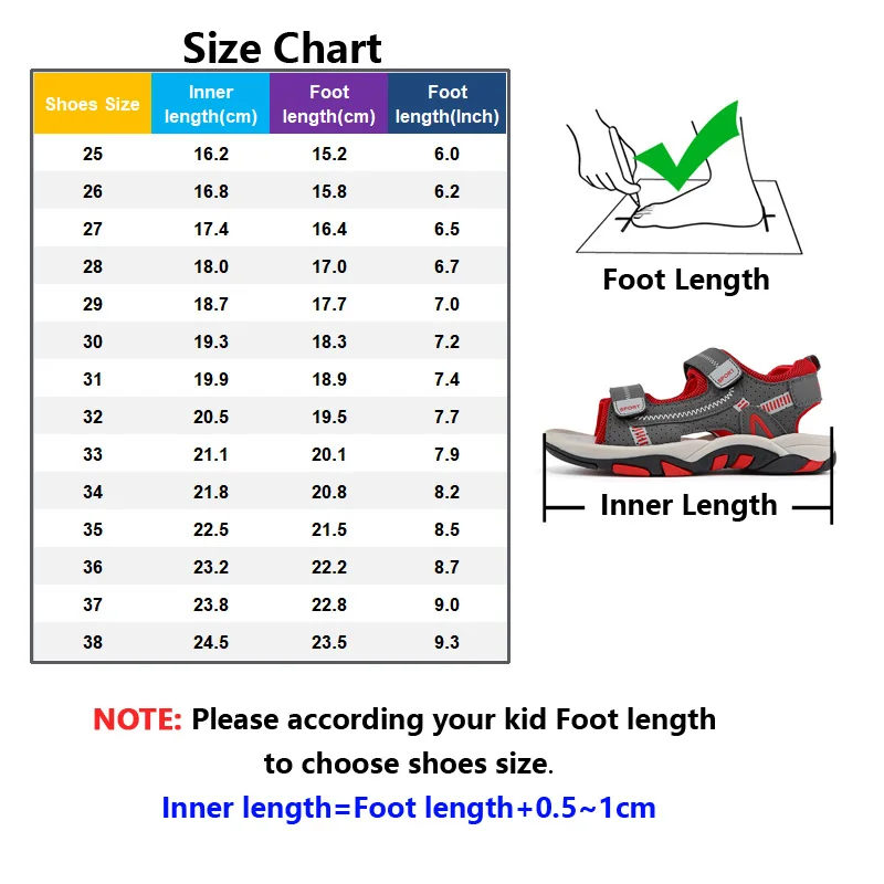 2. Вам необходимо выбрать размер согласно длина стопы вашего ребенка (внутренняя длина = длина стопы + 0,5 ~ 1 см);
