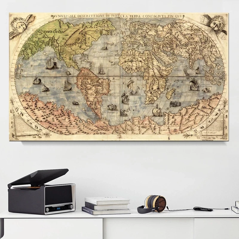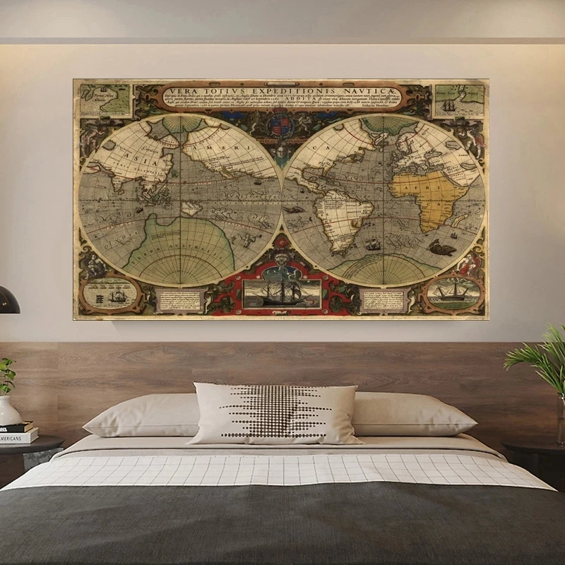 HD карта мира Холст Живопись классическое искусство ретро ностальгические фотографии настенные картины и принты, Безрамные Картины украшение для дома