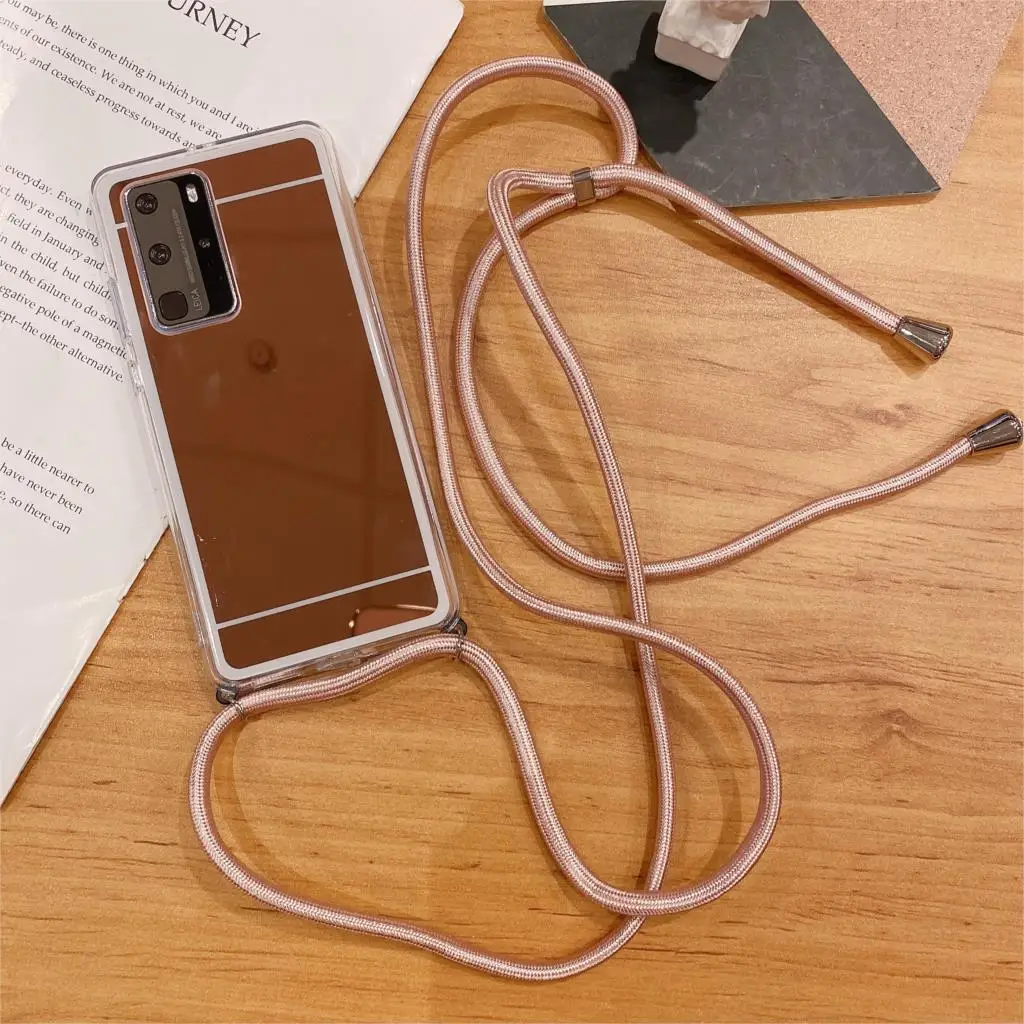 Модный чехол для телефона с зеркалом для макияжа для Huawei P20 P30 P40 Mate 10 20 30 40 Pro ожерелье шнур цепь веревка кросс-боди чехол