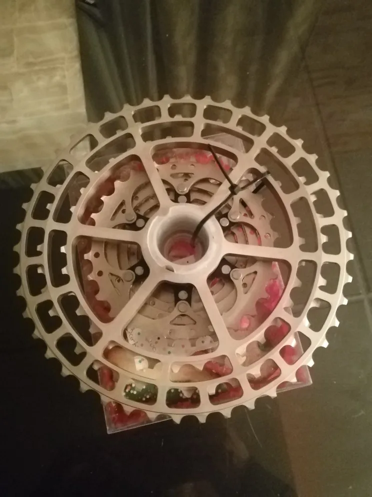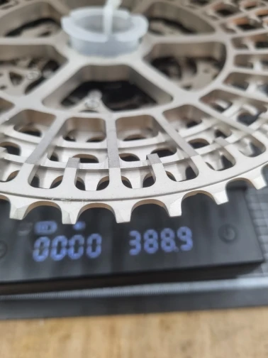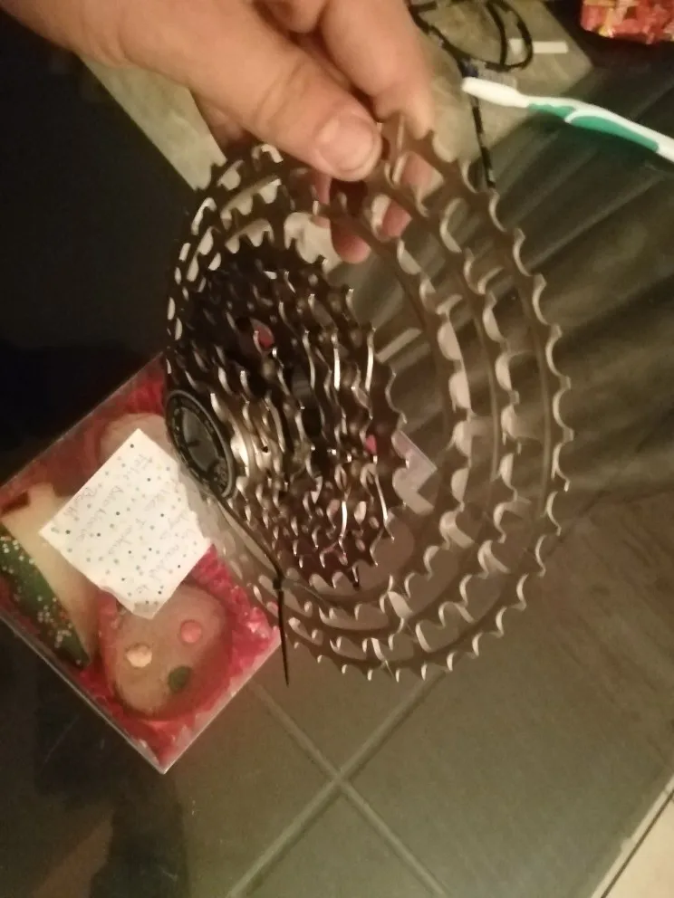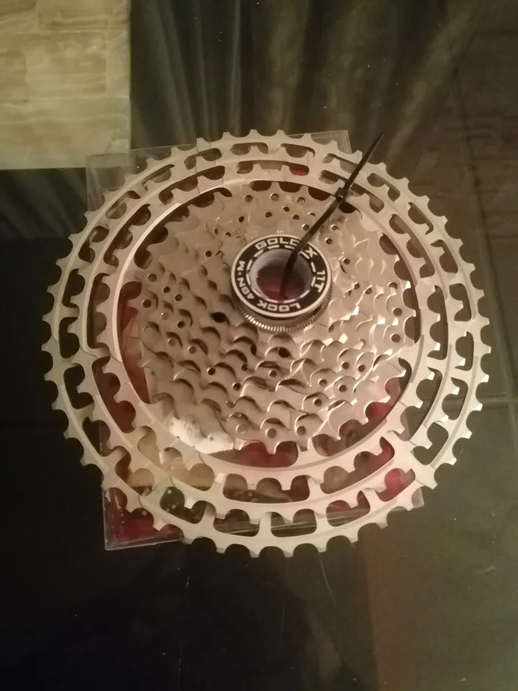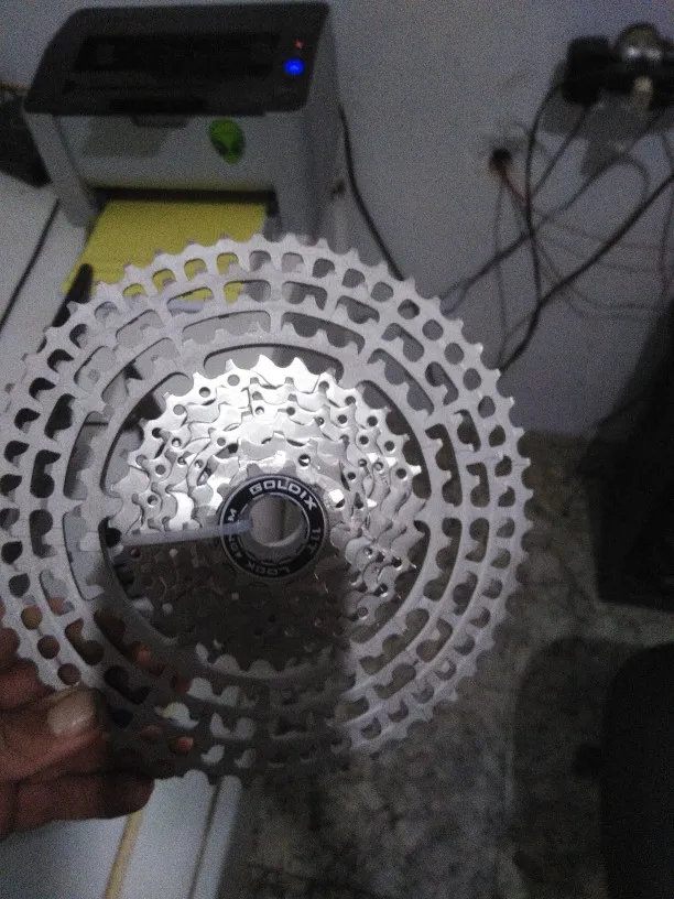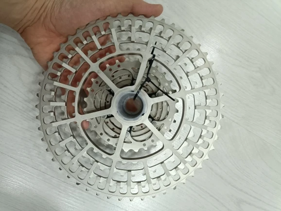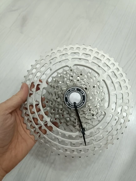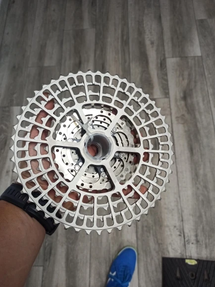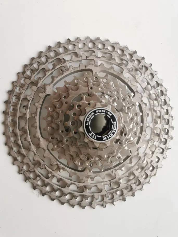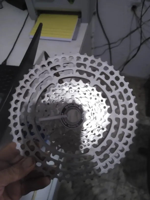 Очень мощно крутил в горку и погнул центральный алюминевый паук и немного звезд. Выпрямил и можно кататься дальше, но просто при покупке вам надо понимать, что это китайская лайт кассета и есть нюансы - если где-то сэкономили на весе комплектующих, значит оно может вылиться в такую ситуацию например. Проехал на ней около 500км и примерно 12к набора по лесу (байк+я+экипировка=около 100кг) на переключателе М7100 и могу сказать, что кассета работает отлично, с настройкой проблем тоже не возникло.