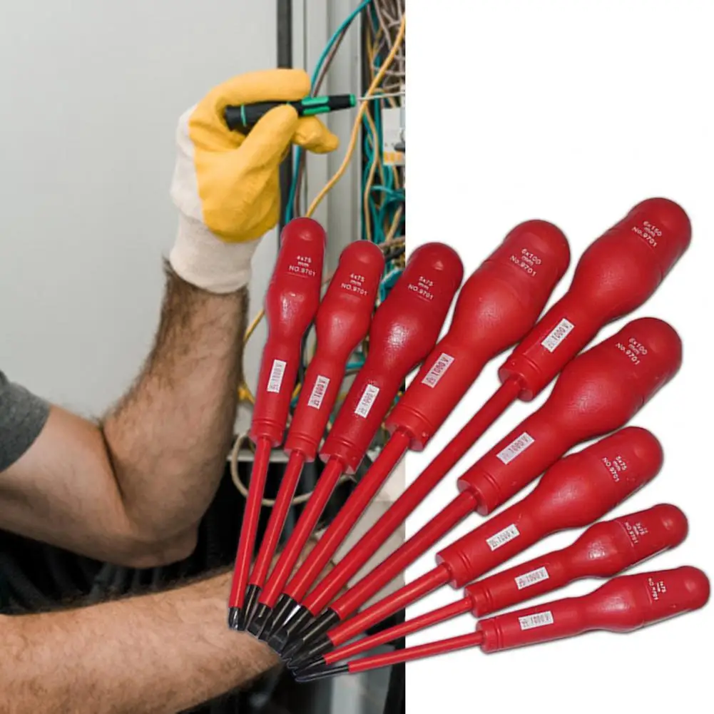 Отвертка 6/7/8/9 шт., изолированная намагниченная обработка, хромованадиевая сталь, Изолированная ручка из полипропилена, отвертка для электрического применения Описание: Рукоятка отвертки изготовлена из высококачественного полипропилена, который выдерживает напряжение 1000 В, безопасен для работы. Выполнен из хромистой стали, поверхность черненая, хвостовик удобен и эргономичен для захвата. Благодаря магнитной обработке головки он может легко поглощать винты, что удобно в эксплуатации. Разные размеры на ваш выбор, его легко носить с собой и хранить. Эта отвертка из высококачественной хромованадиевой стали и полипропилена отличается прочностью и высокой диэлектрической прочностью. Размеры отверток 3x75 мм, 5x75 мм, 6x100 мм, 6 x мм. Подходит для прямого рабочего ремонта, обслуживания электриками. Название товара: отвертка Материал: полипропилен, хромованадиевая сталь Спецификация: 3x75 мм, 4x75 мм, 5x75 мм, 6x100 мм, 6X150 мм Размер: 22 см x 19,5 см x 3,6 см/дюйма x дюйма Примечания: Из-за разницы в освещении и настройках экрана цвет изделия может немного отличаться от изображения. Возможны незначительные различия в размерах из-за различий в измерениях вручную. Посылка входит: 3 Отвертки Phillips (3X75 мм, 5x75 мм, 6x100 мм) 3 шлицевых отвертки (3X75 мм, 5x75 мм, 6x100 мм) Или 3 Отвертки Phillips (3X75 мм, 5x75 мм, 6x100 мм) 4 шлицевых отвертки (3X75 мм, 5x75 мм, 6x100 мм, 6x150 мм) Или 4 шлицевых отвертки (3X75 мм, 5x75 мм, 6x100 мм, 6x150 мм) 3 Отвертки Phillips (3X75 мм, 5x75 мм, 6x100 мм) 1 электрозонд Или 4 Отвертки Phillips (3X75 мм, 4x75 мм, 5x75 мм, 6x100 мм) 5 шлицевых отверток (3X75 мм, 4x75 мм, 5x75 мм, 6x100 мм, 6x150 мм)