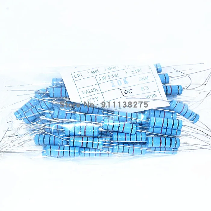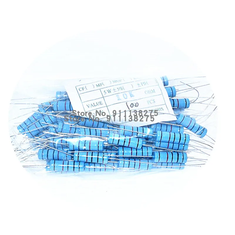 10 шт. 5 Вт 1% металлического пленочного резистора сопротивления 0.1R 10 м 1K 1,2 1,3 3,3 10 22 33 120 360 18 390 470 82 R K ohm 10K 100K 1 м