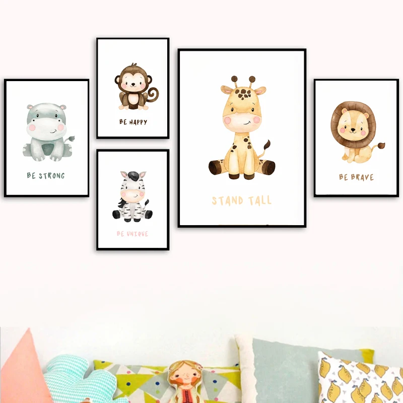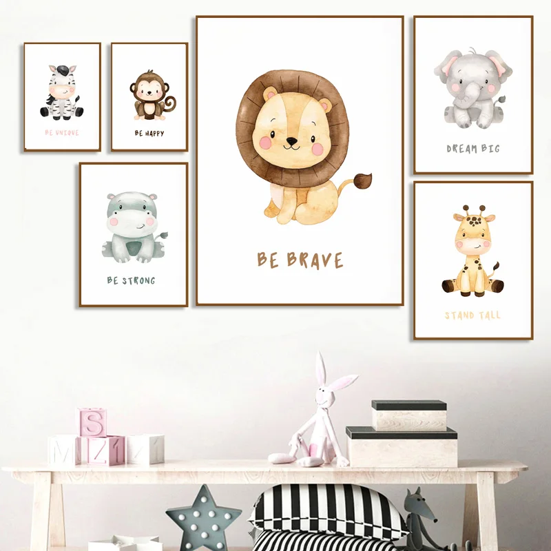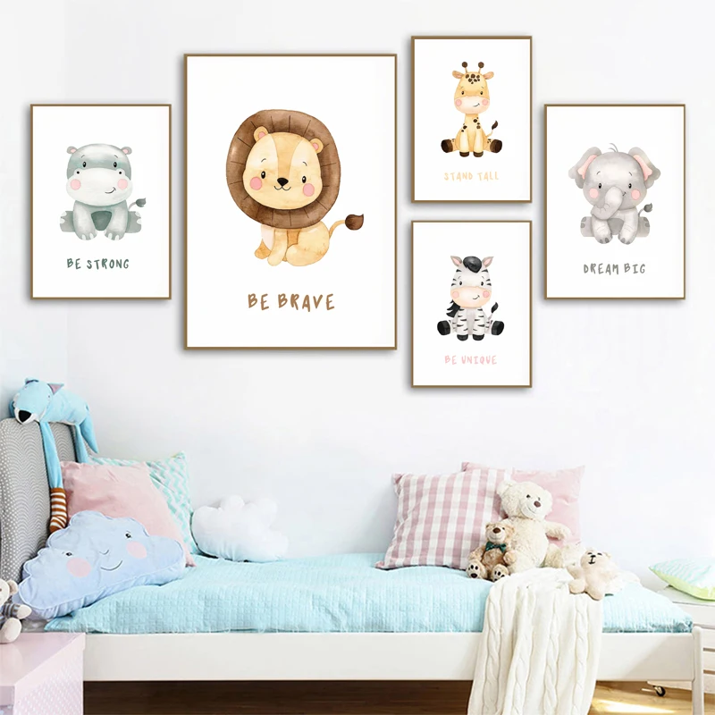 Милые Мультяшные Животные декоративные картины лев ребенок слон Дет...