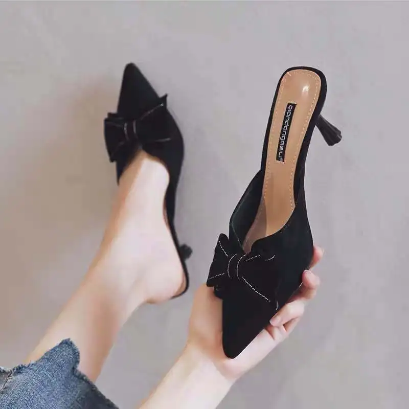Сандалии женские полутапочки весна лето 2021 Новинка универсальная женская обувь на среднем каблуке туфли с острым носком на шпильке женские Тапочки
