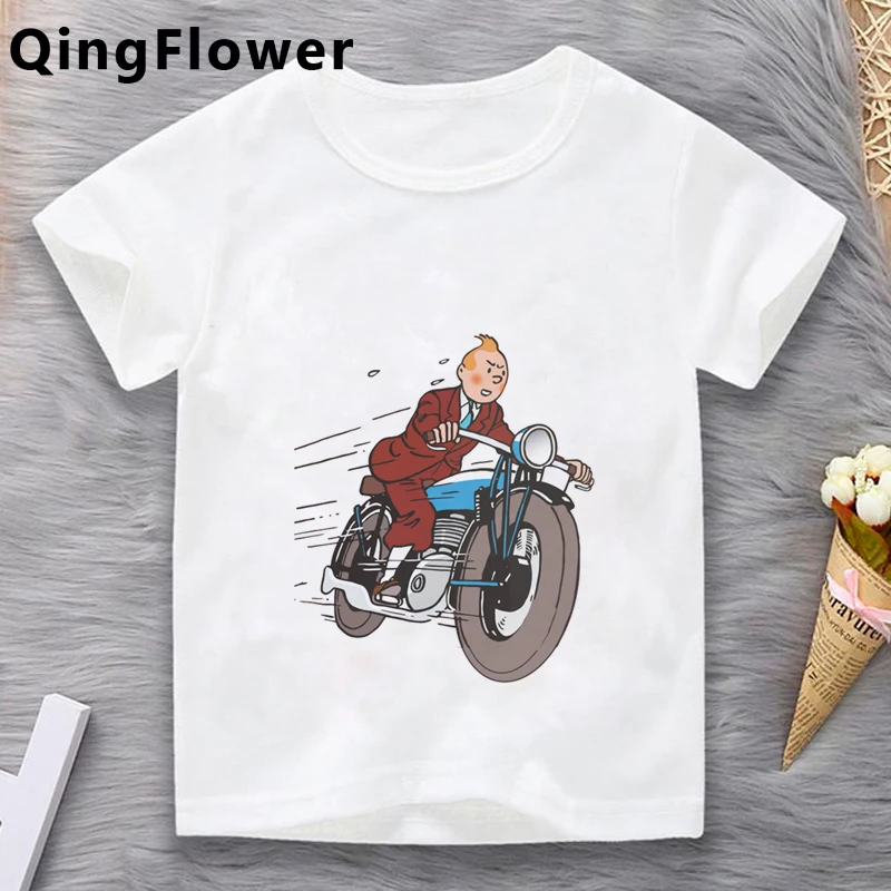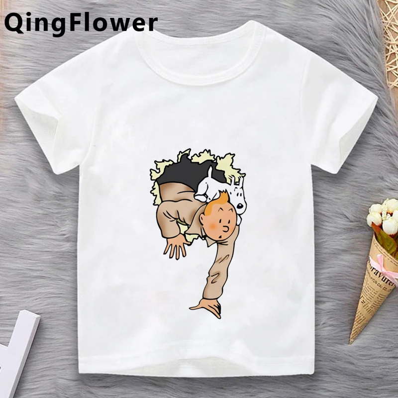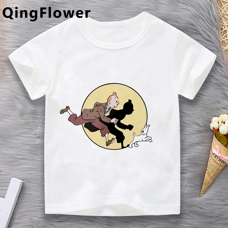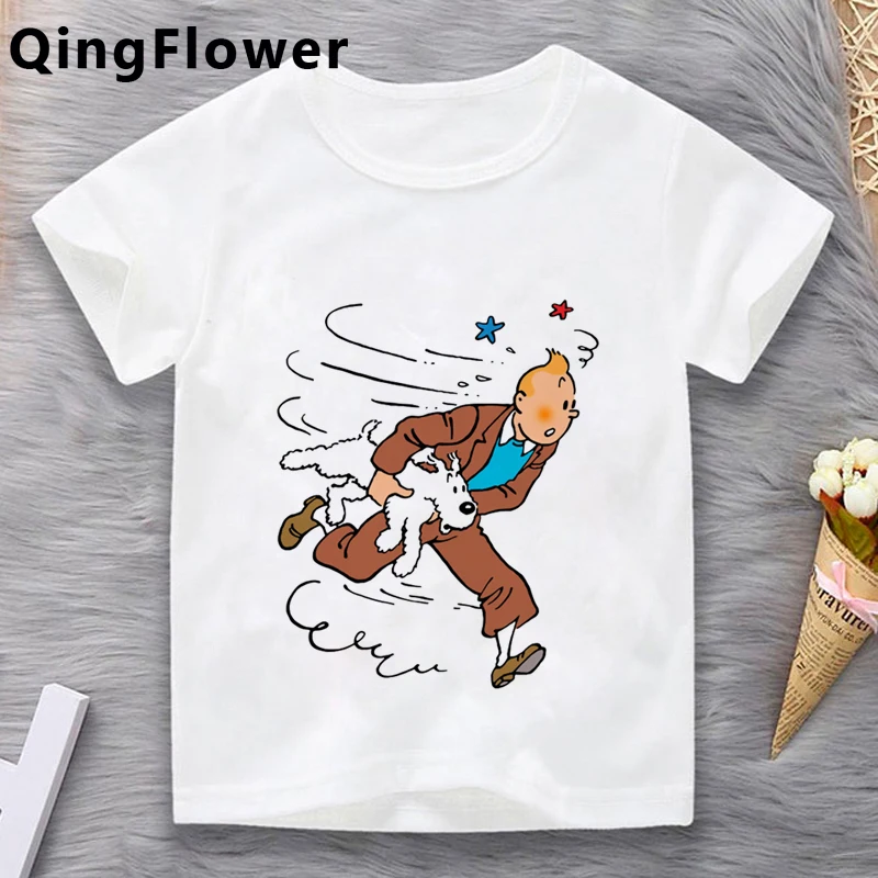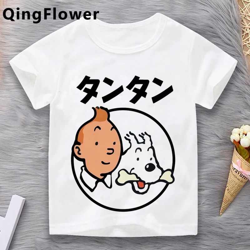 В Приключения Тинтина для подростков детская футболка с надписью ", милые, миленькие в японском стиле (Каваий Лето е для девочек богемный комплект, roupa crianca Футболка Большой беспокоить