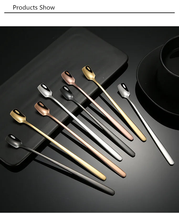 Ложка для льда, 304, из нержавеющей стали, квадратная, ложка для размешивания кофе, с длинной ручкой