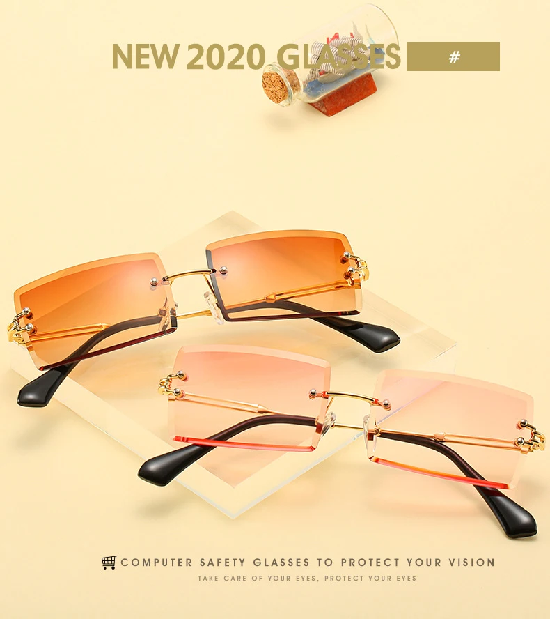 Модные маленькие прямоугольные Солнцезащитные очки женские Квадратные Солнцезащитные очки без оправы 2022 Летние Стильные женские солнцезащитные очки uv400 зеленые коричневые
