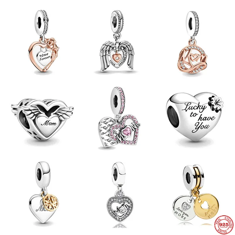 Подлинное серебряные бусины 925 пробы сердце и мама двухцветное семейное дерево Подвеска Шарм подходит для оригинального браслета Пандоры DIY ювелирные изделия