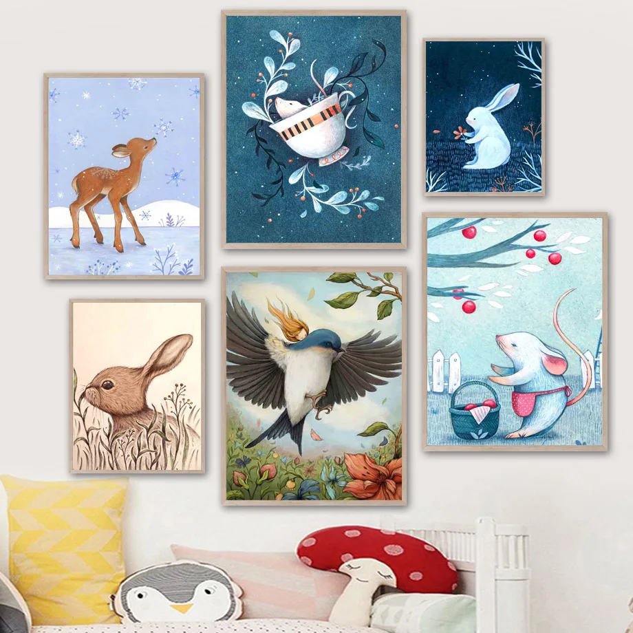 Кролик лиса Медведь Олень енот животное детская стена искусство хол...