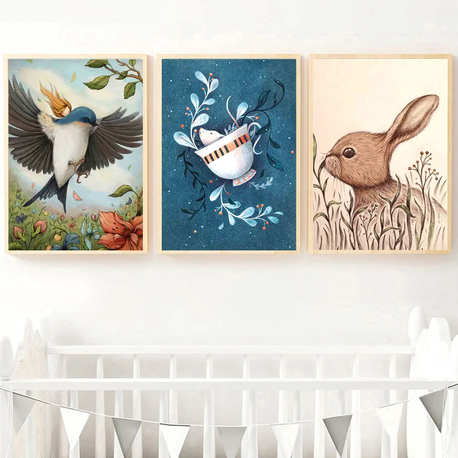 Милый кролик кошка олень собака овечка животное настенная Картина н...
