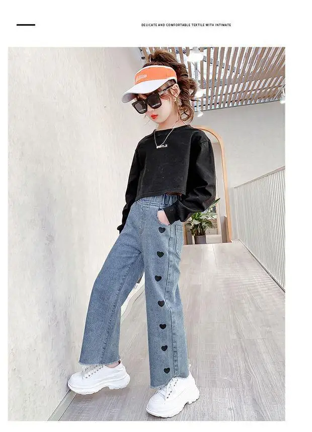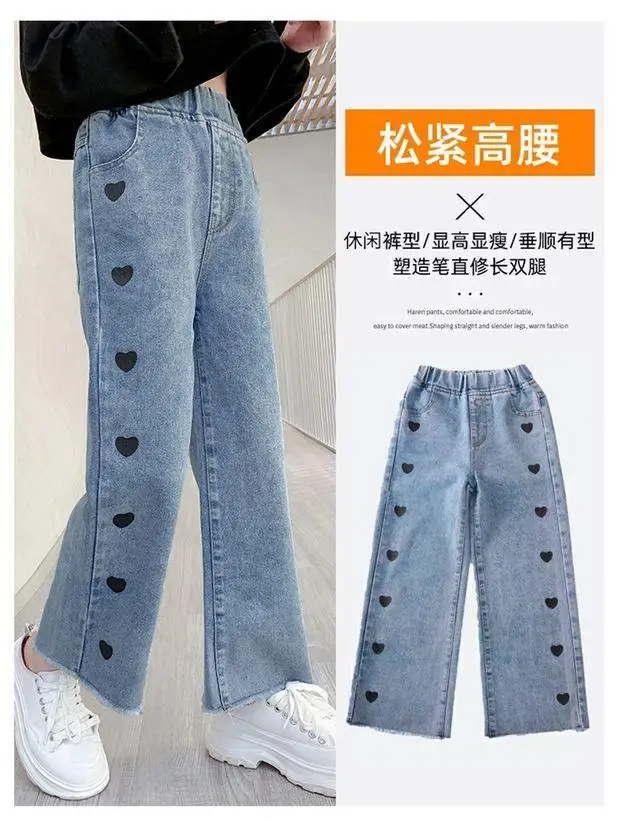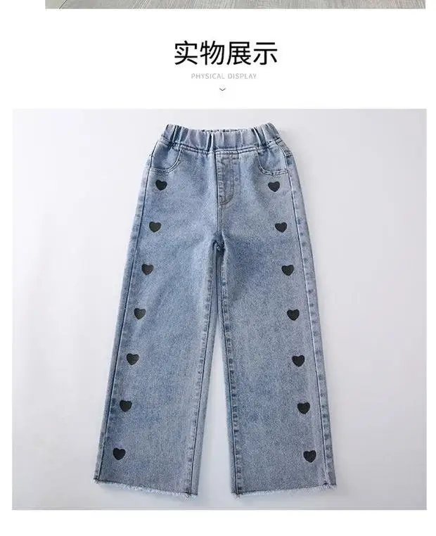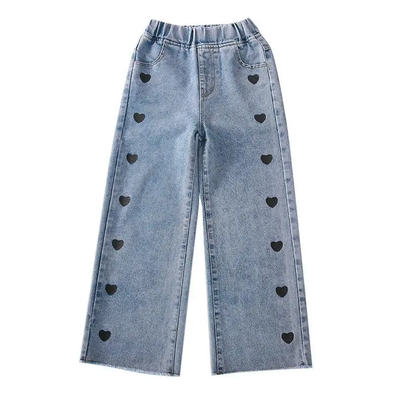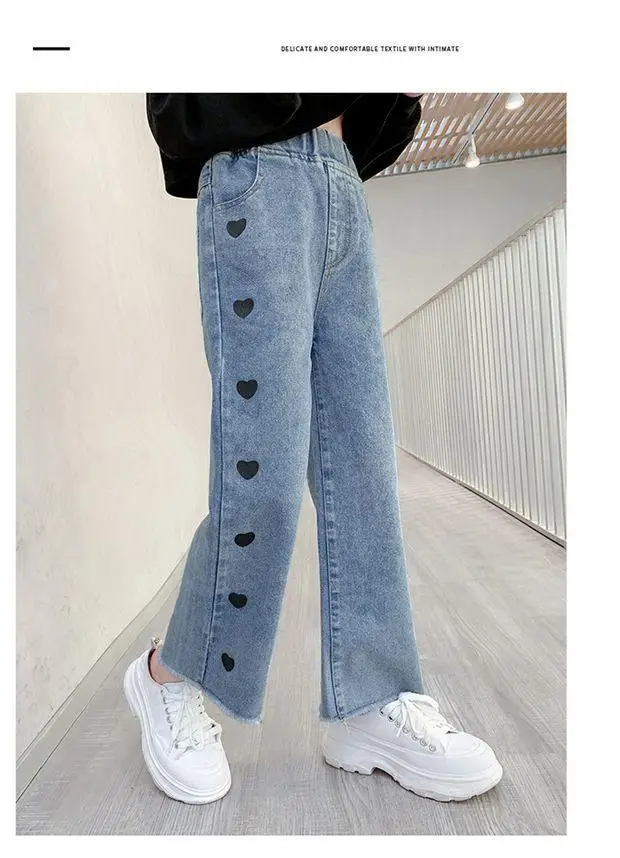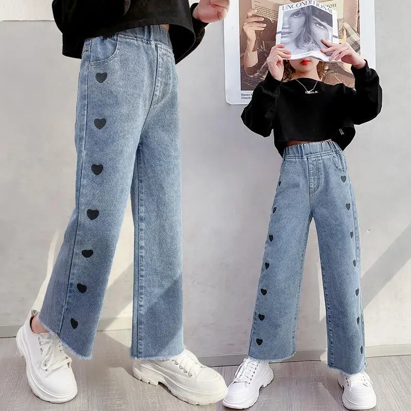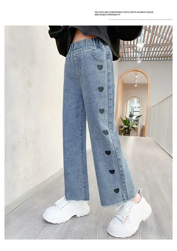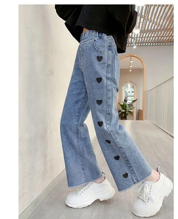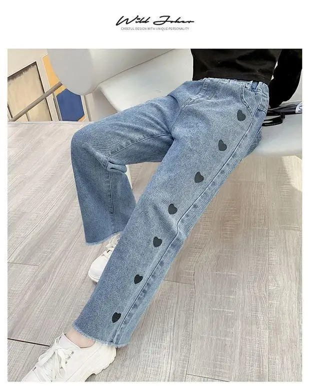 Джинсы для девочек, детские джинсы с сердечками, весенне-осенние джинсы для девочек, Повседневные детские джинсы, одежда для детей 6, 8, 10, 12, 14, 16 лет