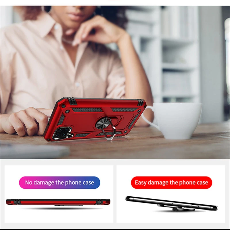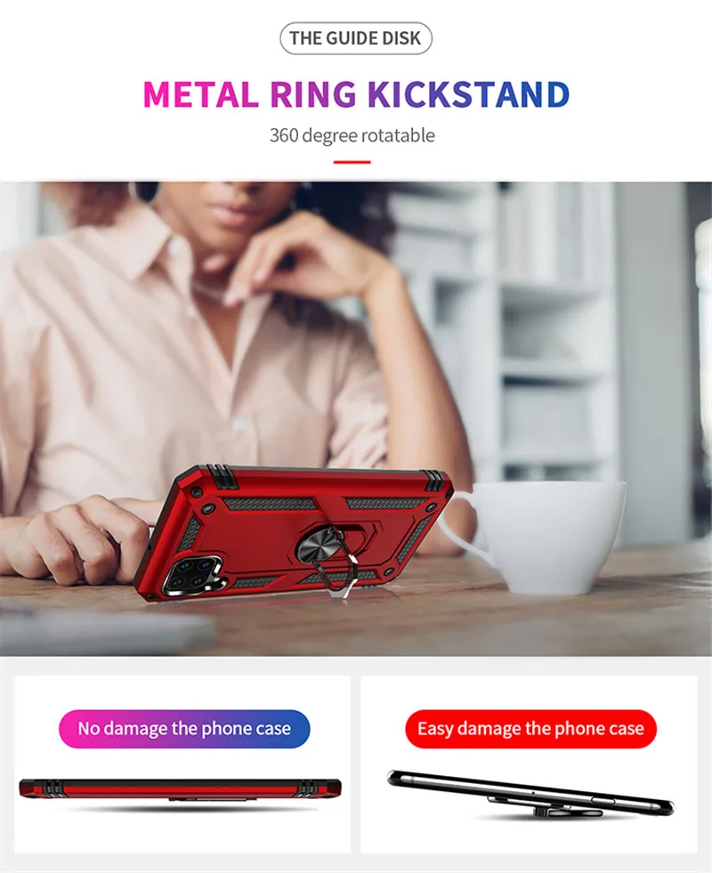 [Материал]: Изготовлен из высококачественной резины + жесткого пластика + вращающийся на 360 градусов металлический кольцевой держательЖесткий чехол из поликарбоната и бампер из ТПУ обеспечивают сцепление и тонкий профиль.Идеально подходит для вашего телефона с точными вырезами для всех кнопок и портов, с приподнятым ободком для поднятия экрана и камеры с плоской поверхности.Встроенная паутина, как текстура на внутренней задней панели, значительно способствует рассеиванию тепла и охлаждению телефона в процессе использования.【Совместимость с магнитным креплением для автомобиляВстроенная металлическая пластина, ее можно притягивать к магнитному автомобильному держателю (магнитное автомобильное крепление в комплект не входит), никаких сложных шагов по установке, прямое поглощение.【 Складное кольцо на заднем пальце на 360 градусовОн изготовлен из алюминиевого сплава, что позволяет вам иметь Лучшее и безопасное сцепление при достижении большего количества частей экрана. Предоставляет вам несколько углов обзора для просмотра видео и фильмов в качестве подставки【Гибридная защита 】Двухслойный амортизирующий бампер премиум-класса из ТПУ и гладкий защищающий ПК Жесткий корпус с прорезиненными краями и угловыми буферами для защиты вашего телефона от всех падений, царапин и ударов.