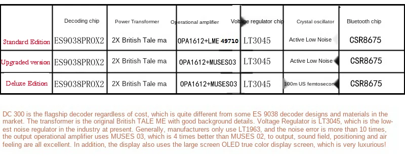 Полностью сбалансированный аудиодекодер DAC DC300 с Bluetooth, чип ES9038PRO + чип CS8675, поддерживает источник питания AMP AV110220 В с дисплеем