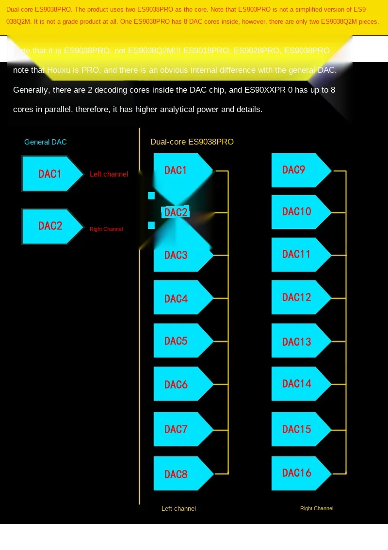 ES9038PRO-8 ядер, 2 канала и 16 ядер соединены параллельно для декодирования выхода. Это нормально, что температура немного выше, чем обычные 2 ядра декодеров, и все они очень безопасные диапазоны рабочих температур.