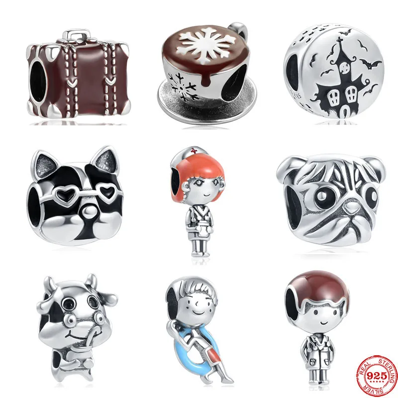 Подходящие оригинальные шармы-браслеты Pandora, серебряные шармы-бу...