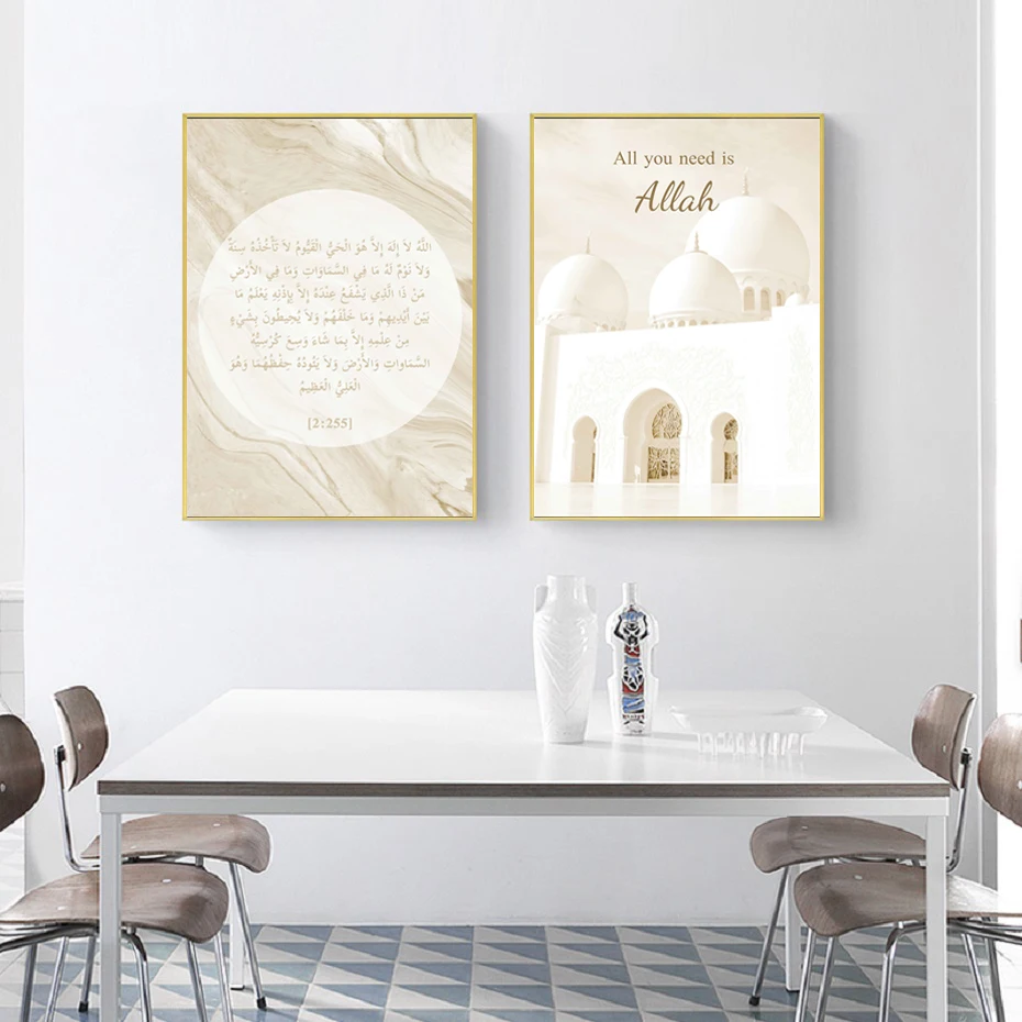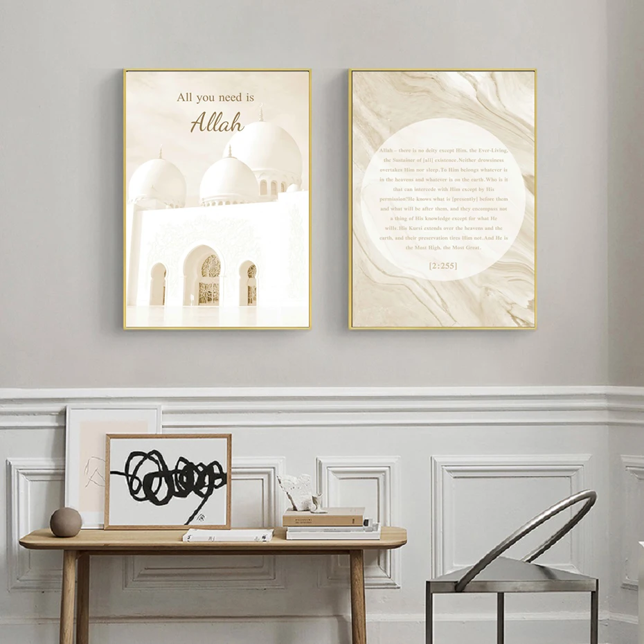 Исламский бежевый постер мраморная Цитата Печать на холсте здание м...