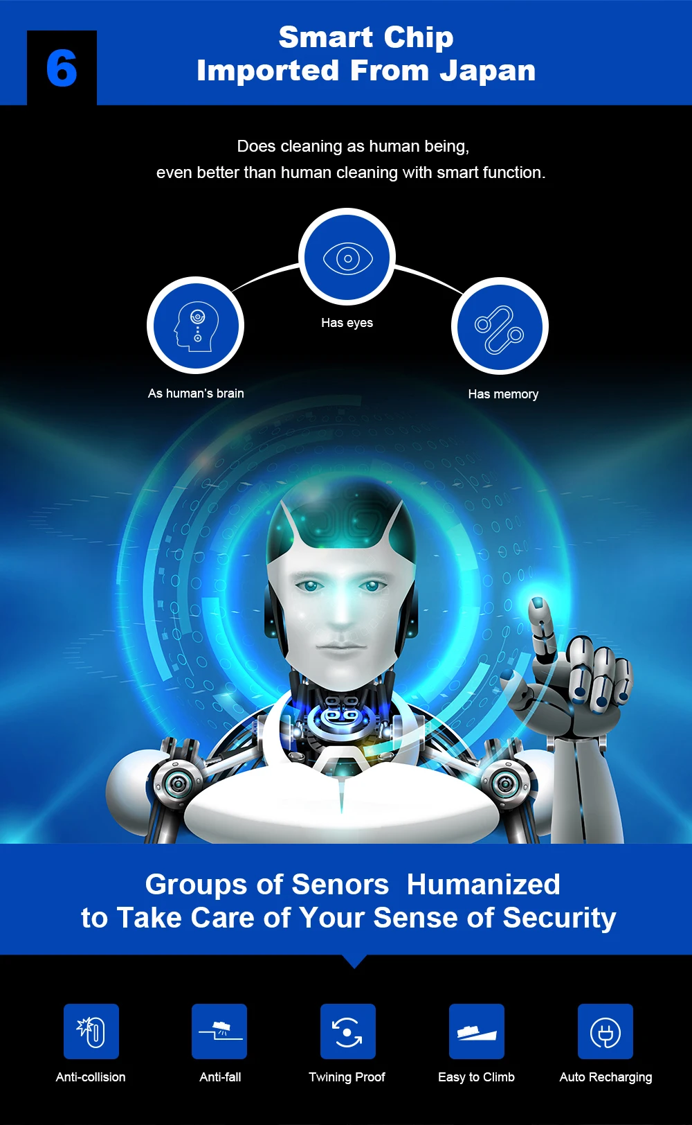 5. Система анти-падения для обнаружения лестницы, чтобы избежать падения.