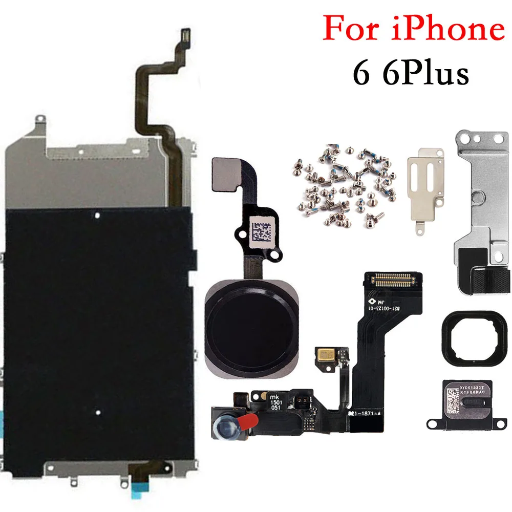 Полный комплект запчастей для ЖК-экрана, металлическая пластина, Передняя камера, кнопка домой, гибкий кабель, ушной динамик с винтами для iPhone 6G 6 Plus